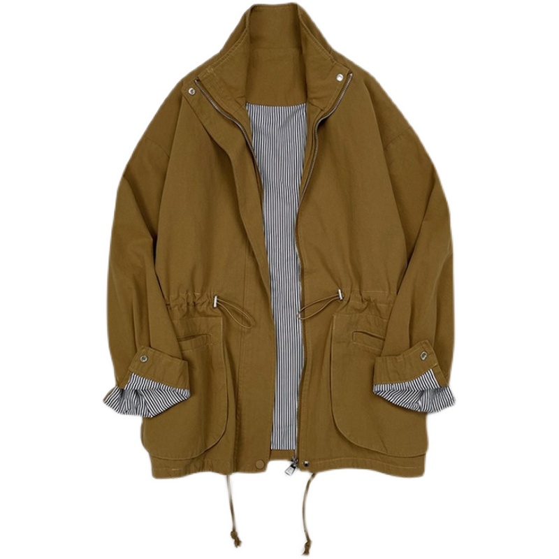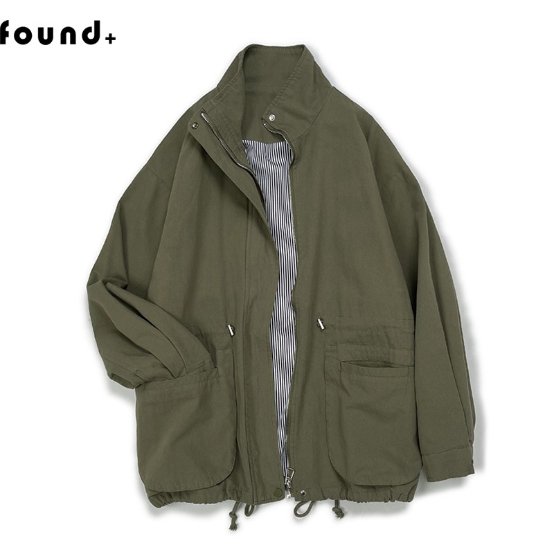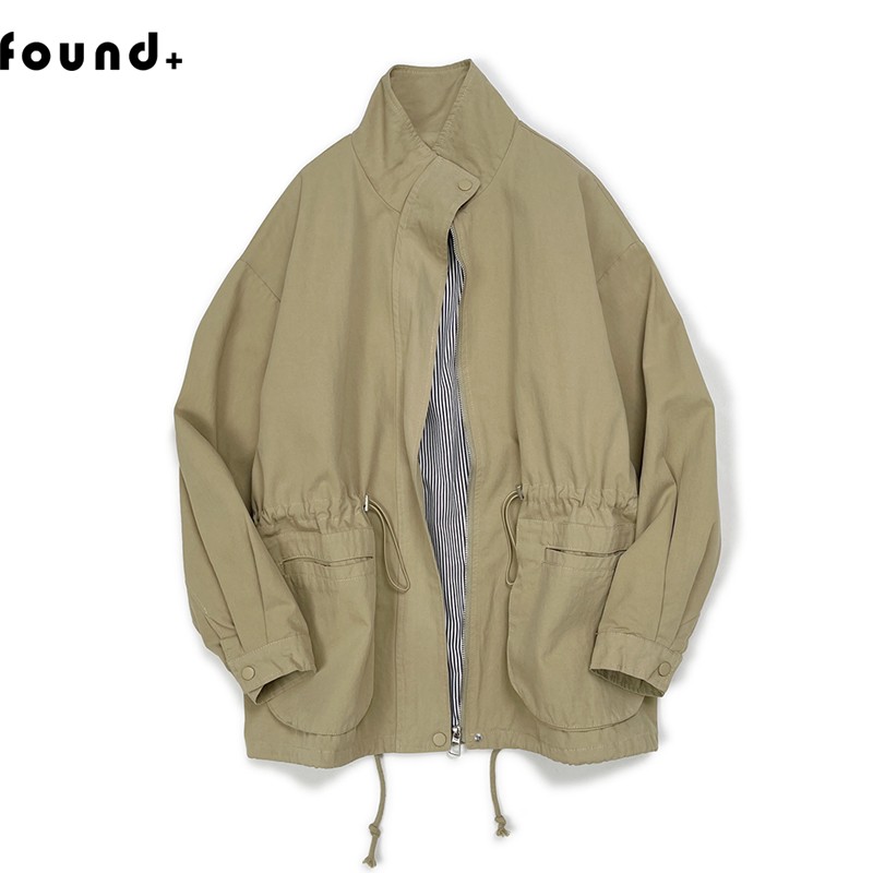 23WT14 Found+春秋新款 磨毛棉布工装外套女立领夹克抽绳收腰风衣