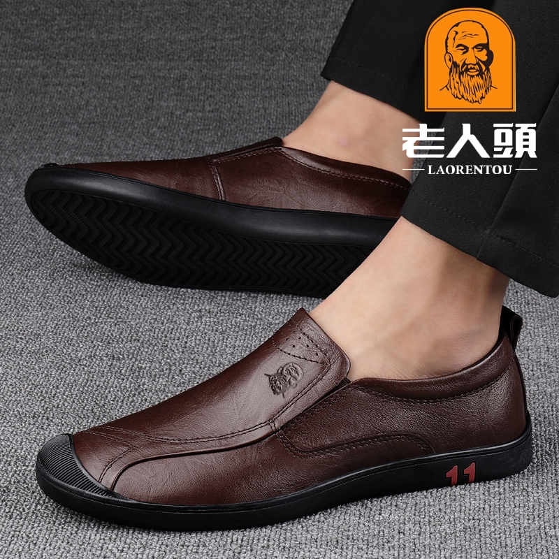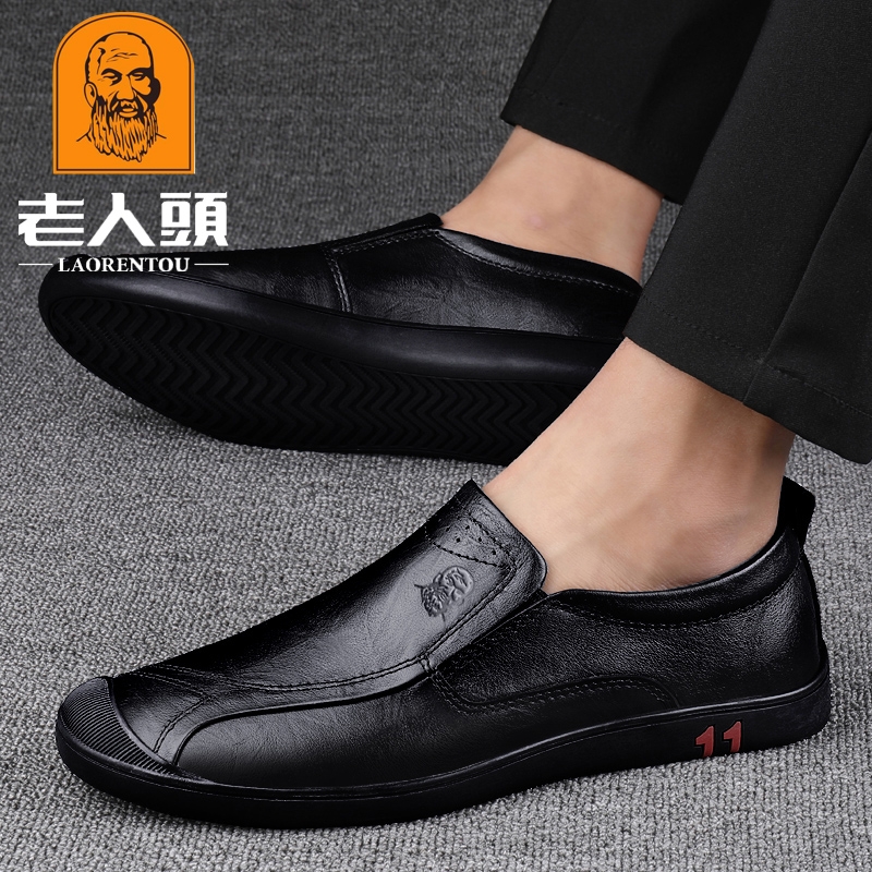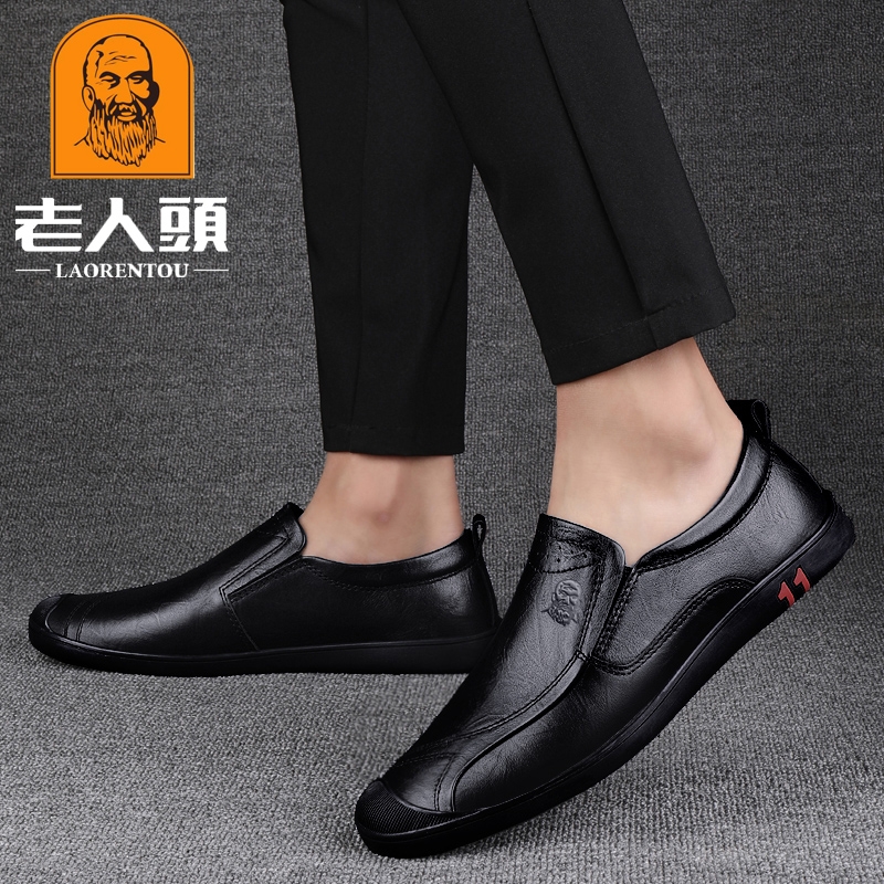 老人头正品小码37码头层牛皮男鞋子真皮透气套脚商务中年休闲皮鞋