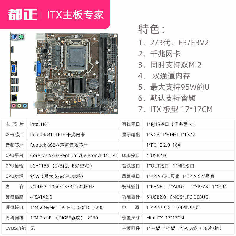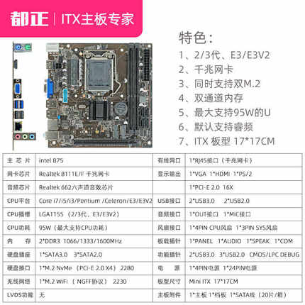 都正ITX B75/H61电脑主板台式机1155针M.2 NvMe千兆E3V2睿频ZQi77