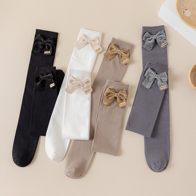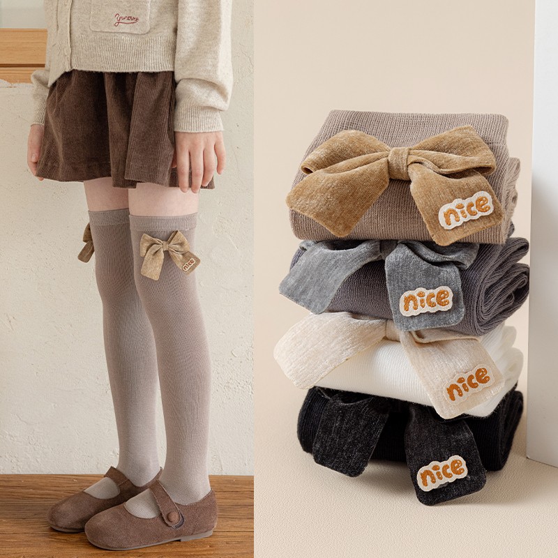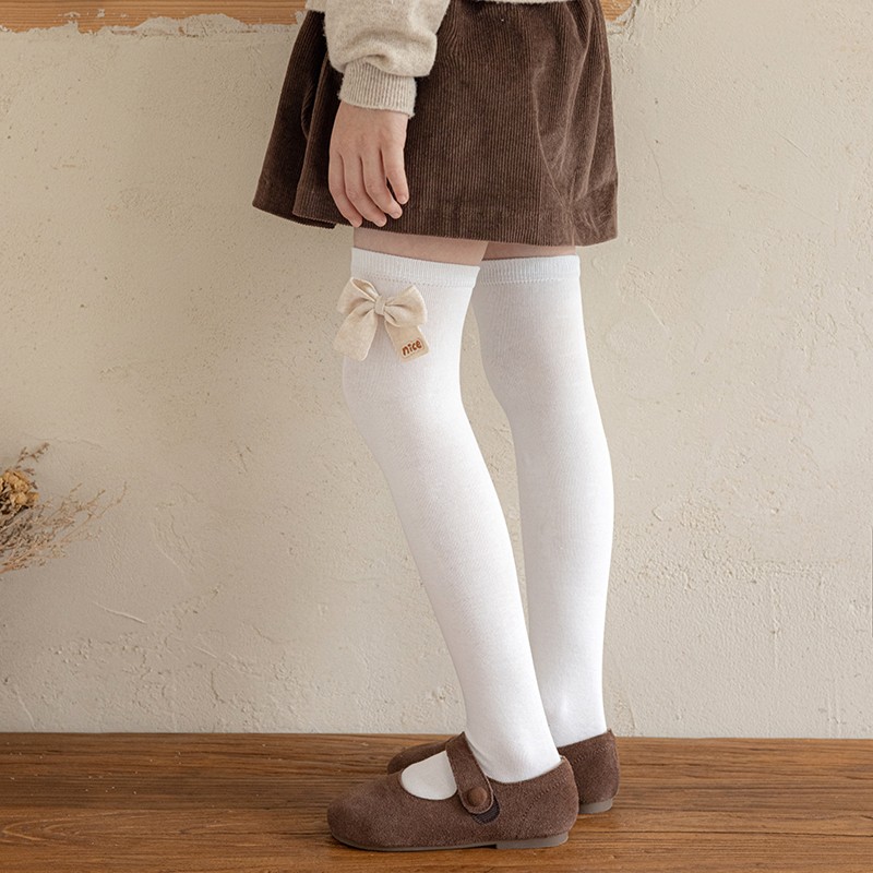 儿童袜子春秋新款女童过膝袜宝宝蝴蝶结高筒打底袜学生白色大腿袜