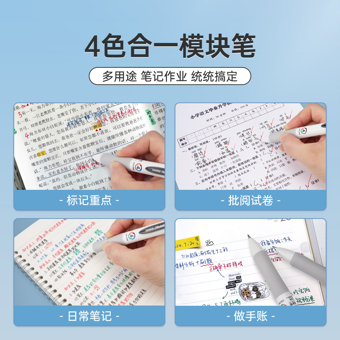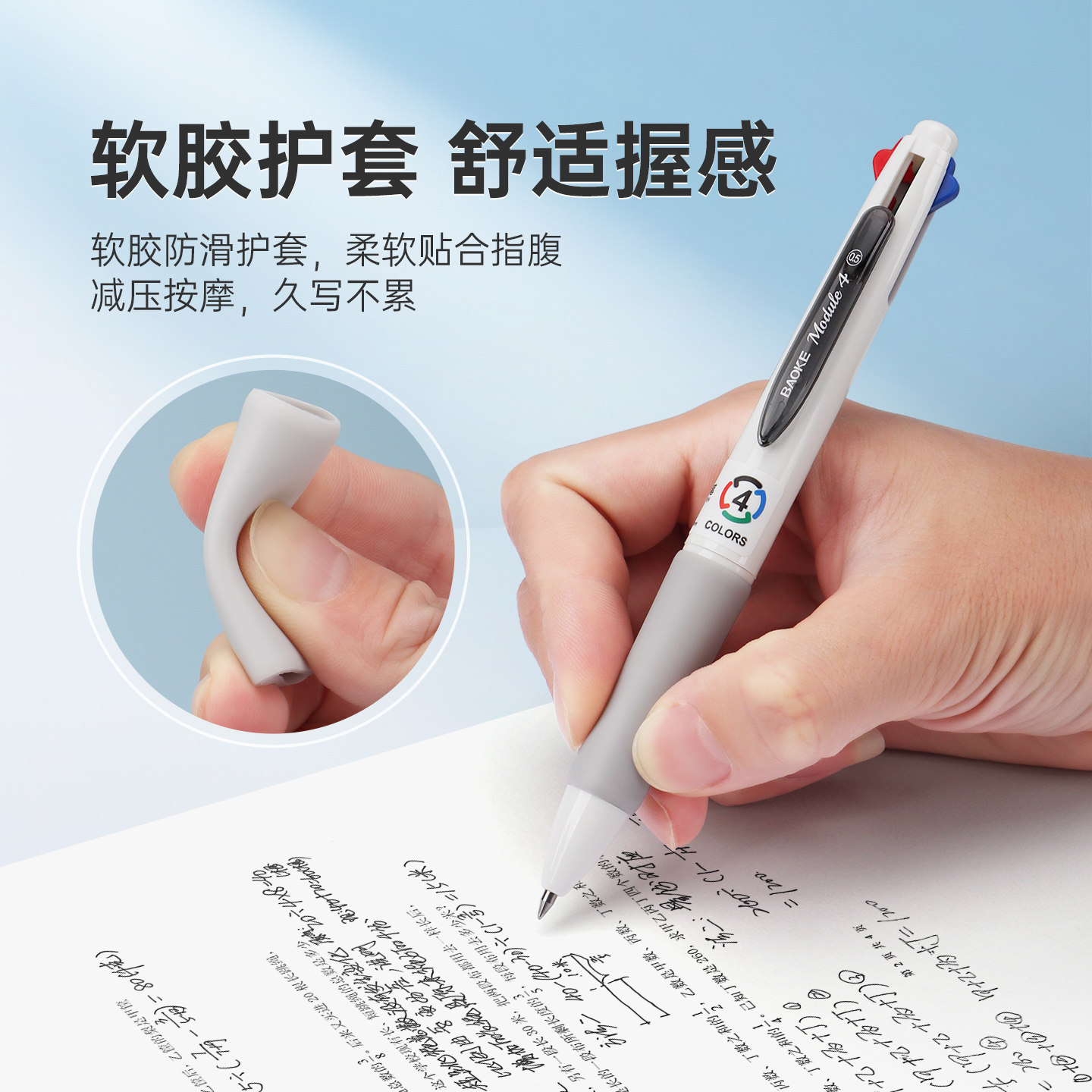 宝克四色中性笔做笔记专用多色笔0.5mm按动中性笔学生专用速干顺滑三色合一笔多功能彩色模块笔PC1967