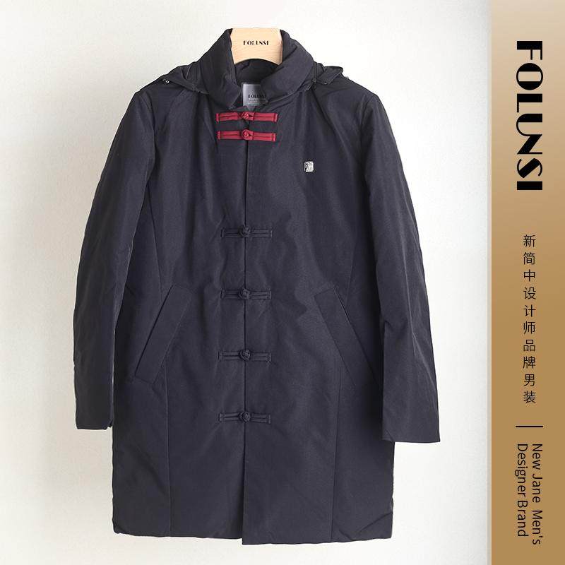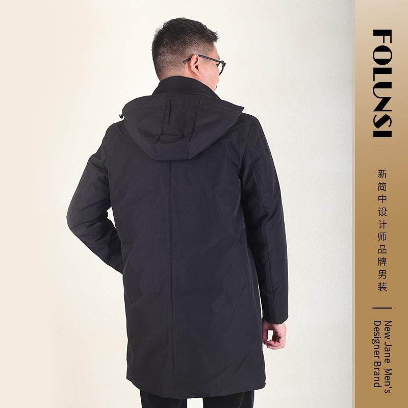 佛伦斯FOLUNSI冬季休闲男装复古纽扣中长款男士羽绒服外套