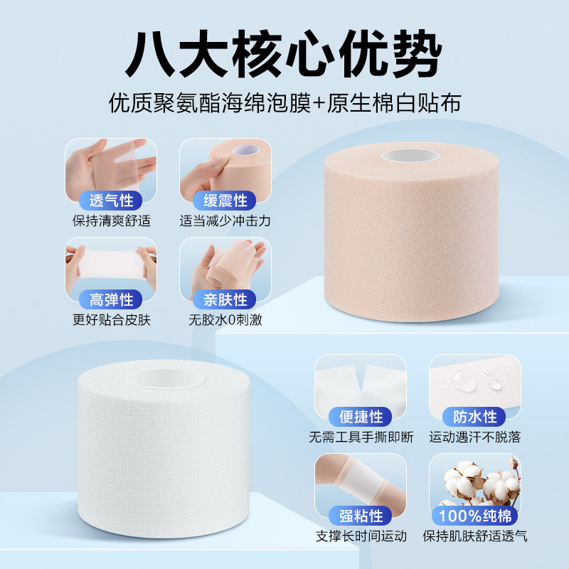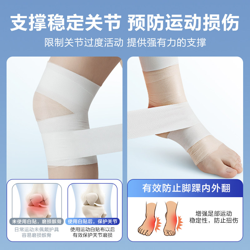 皮肤膜打脚绷带弹力自粘白贴布运动胶布胶带篮球足球防护髌骨脚踝
