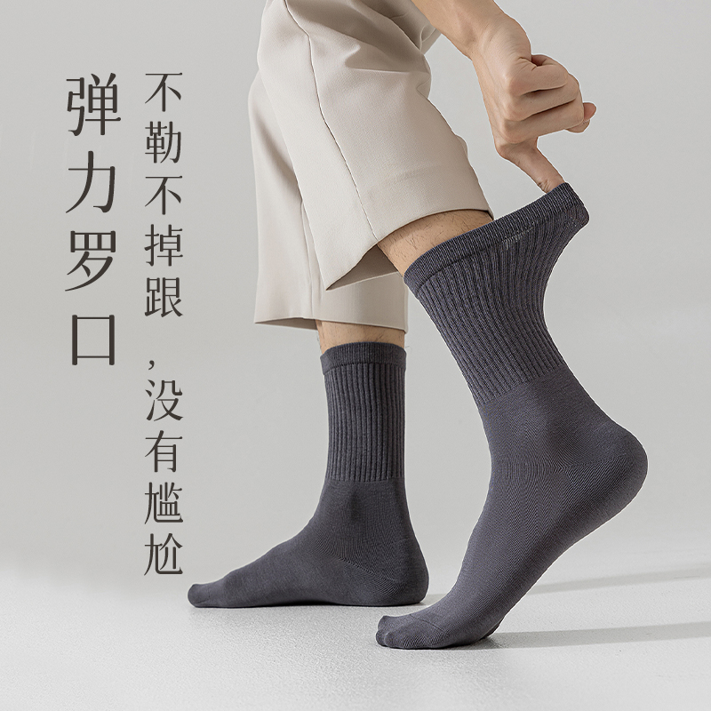 袜子男中筒袜秋冬季纯色棉袜吸汗抗菌防臭厚袜子无骨长筒男士棉袜