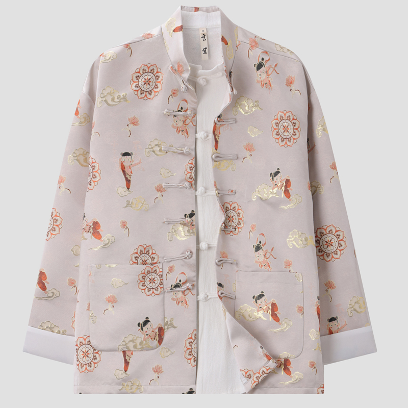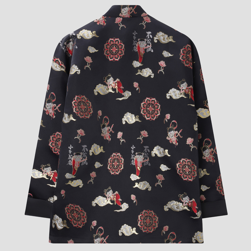 2025新款唐装男立领宽松哪吒祥云提花长袖外套中式中国风夹克上衣