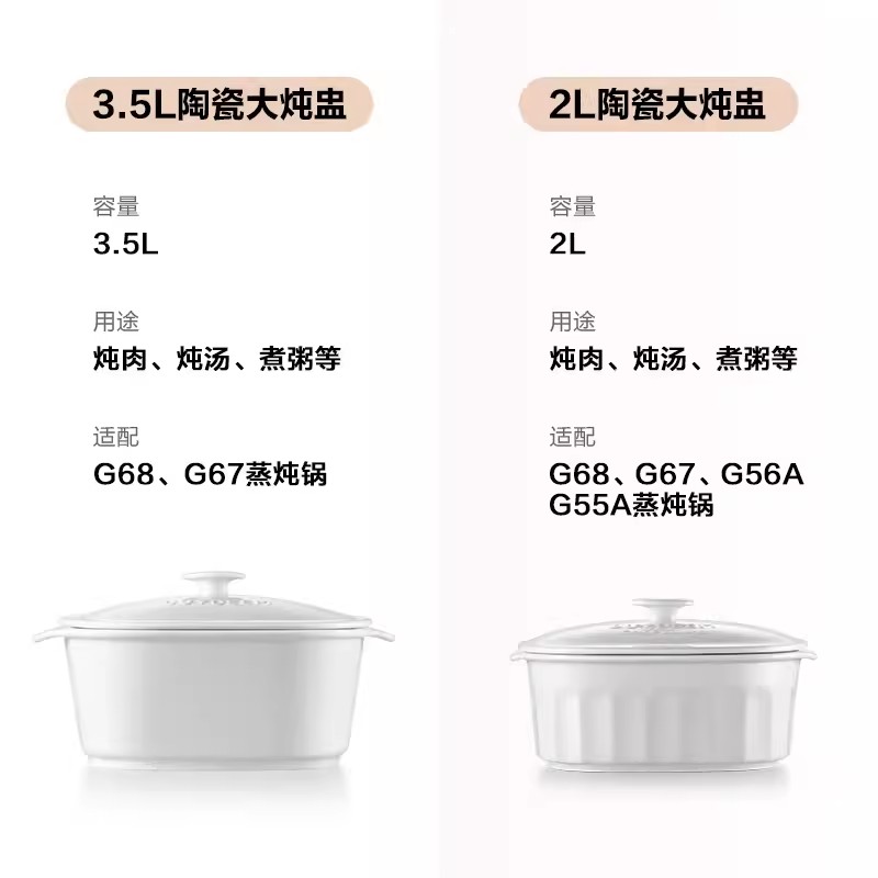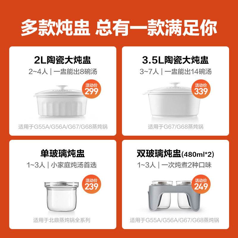 北鼎陶瓷大炖盅蒸炖锅配件G68/G56A适用大容量隔水炖鸡汤全家配件