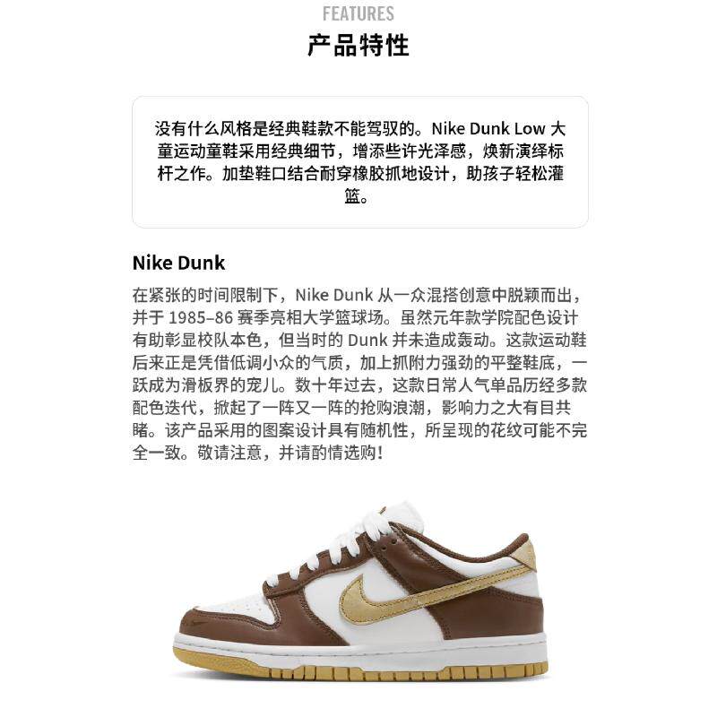 Nike Dunk LOW舒适 防滑耐磨 低帮 儿童板鞋 褐黄白 青少年
