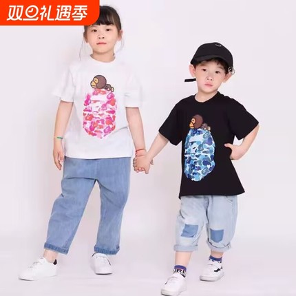 260克亲子短袖潮童装ins日系猴子头夏装半袖男女休闲宽松T恤上衣