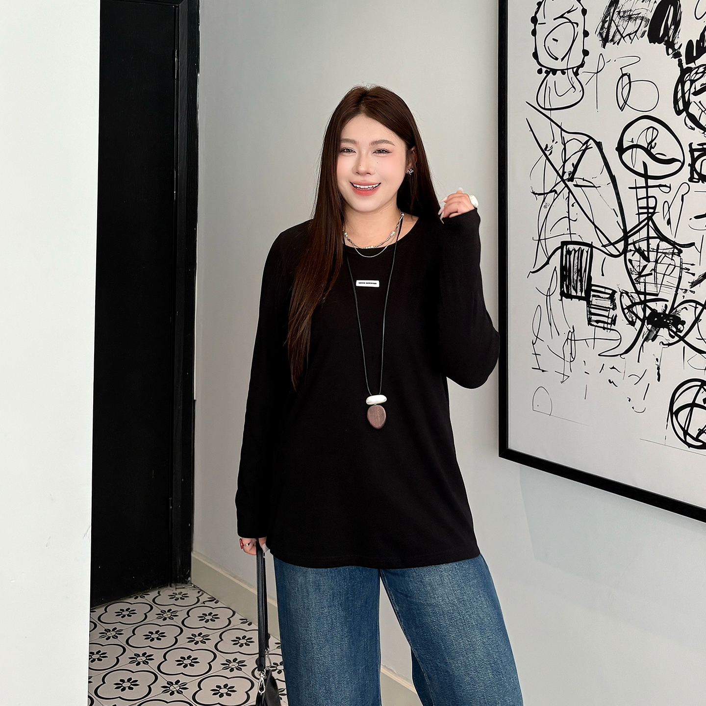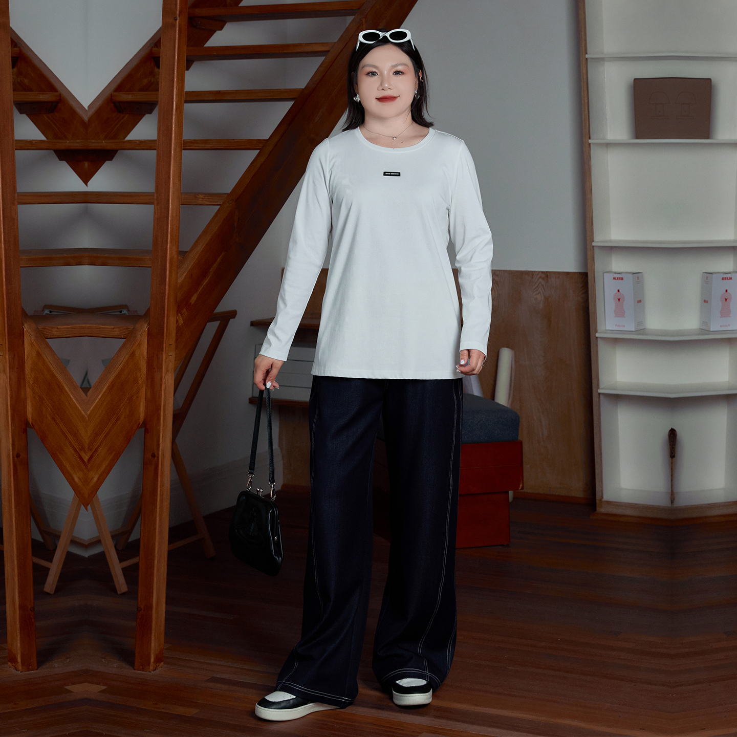 字母标高弹打底衫大码女装2025秋新款T恤胖mm宽松显瘦长袖上衣