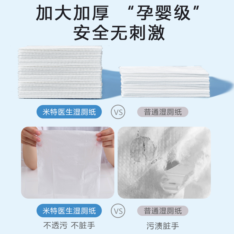 米特医生湿厕纸家庭实惠装女士专用擦屁股湿纸巾厕所湿厕巾16包