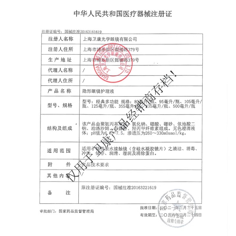 卫康隐形眼镜护理液新视500*2+125ml美瞳水大瓶近视眼镜清洁液
