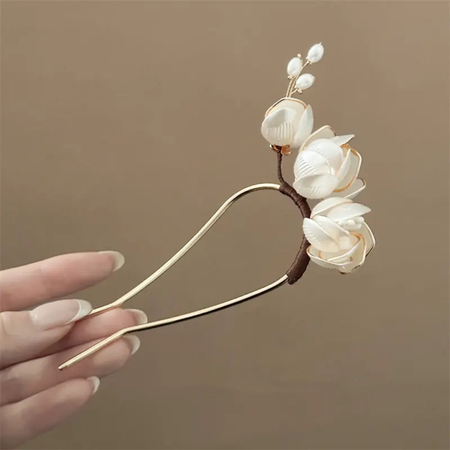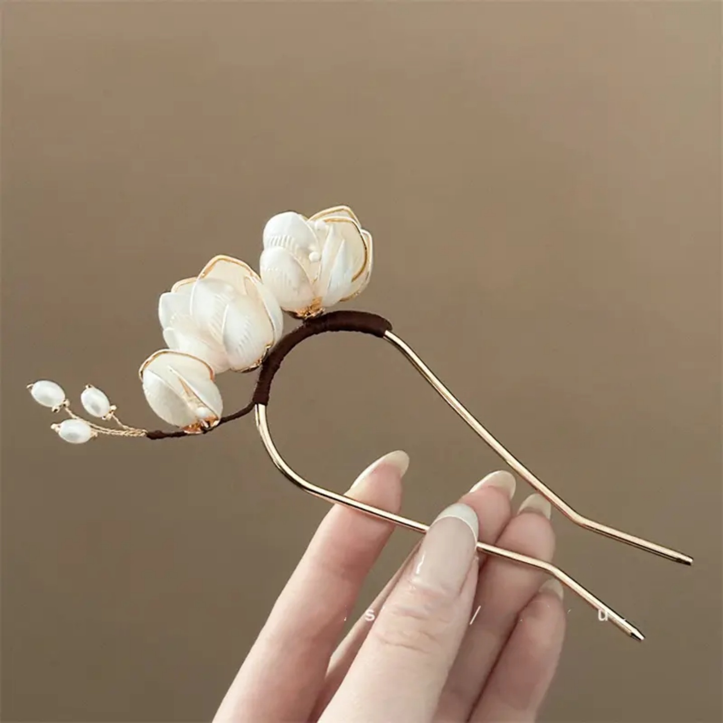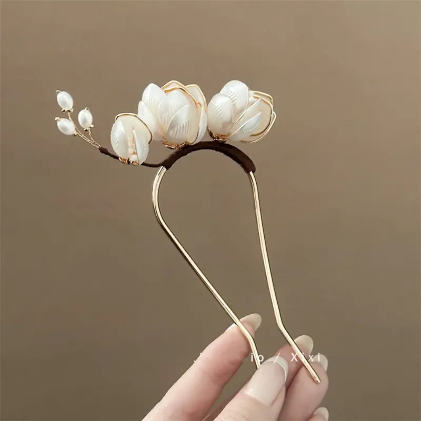高级感玉兰花苞发簪新中式金属U型簪子温柔气质古风头饰汉服配饰