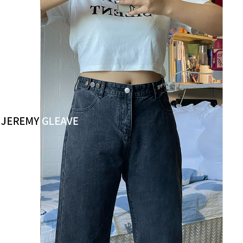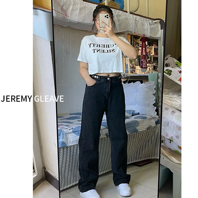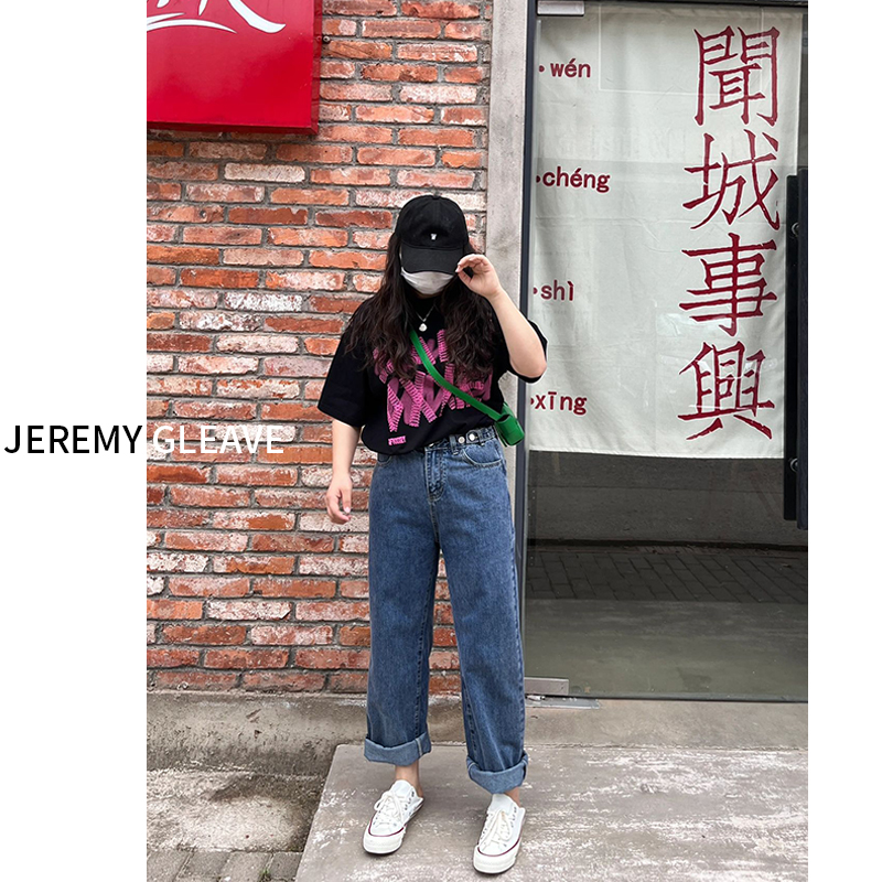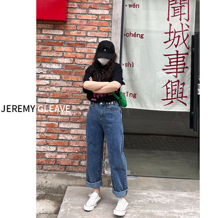 大码女装胖mm高腰直筒阔腿牛仔裤