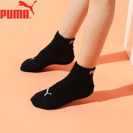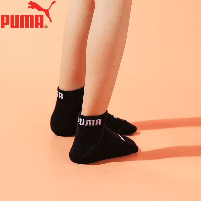 PUMA彪马男女儿童袜子薄款男女童夏季中筒棉袜中大童男生白色