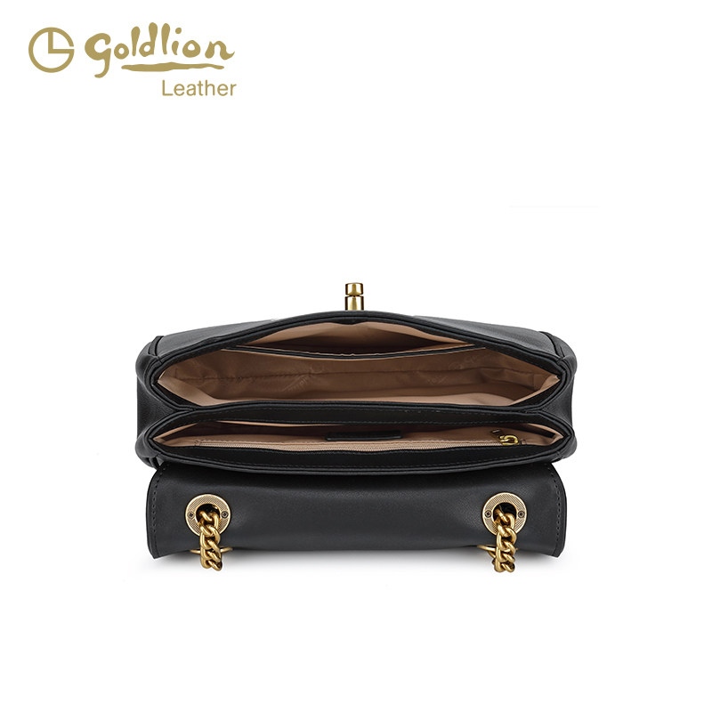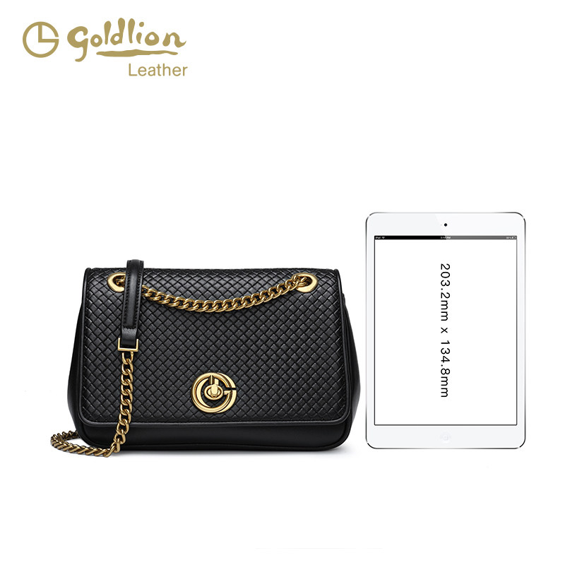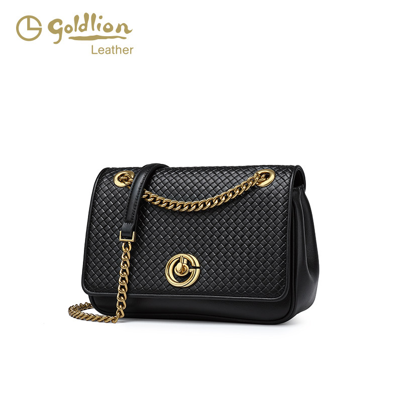 金利来2025新款女包时尚真皮优雅轻奢单肩斜挎包编织链条小方包潮