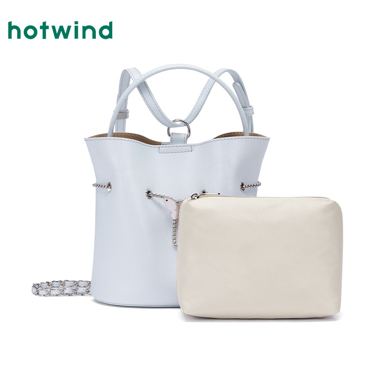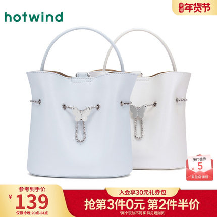 热风包包2025年春季新款女士蝴蝶锁扣手提双肩两用抽绳水桶包包女