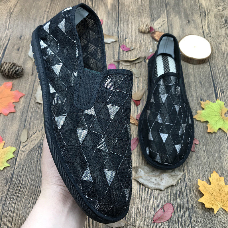 夏季老北京布鞋男西山牛筋底镂空网纱透气鞋日常休闲社会人防臭鞋