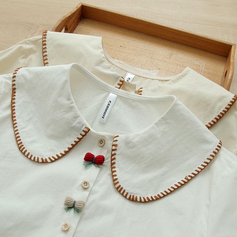 胖女孩长袖衬衫2025春秋加肥加大码女大童学生蝴蝶结开衫宽松上衣