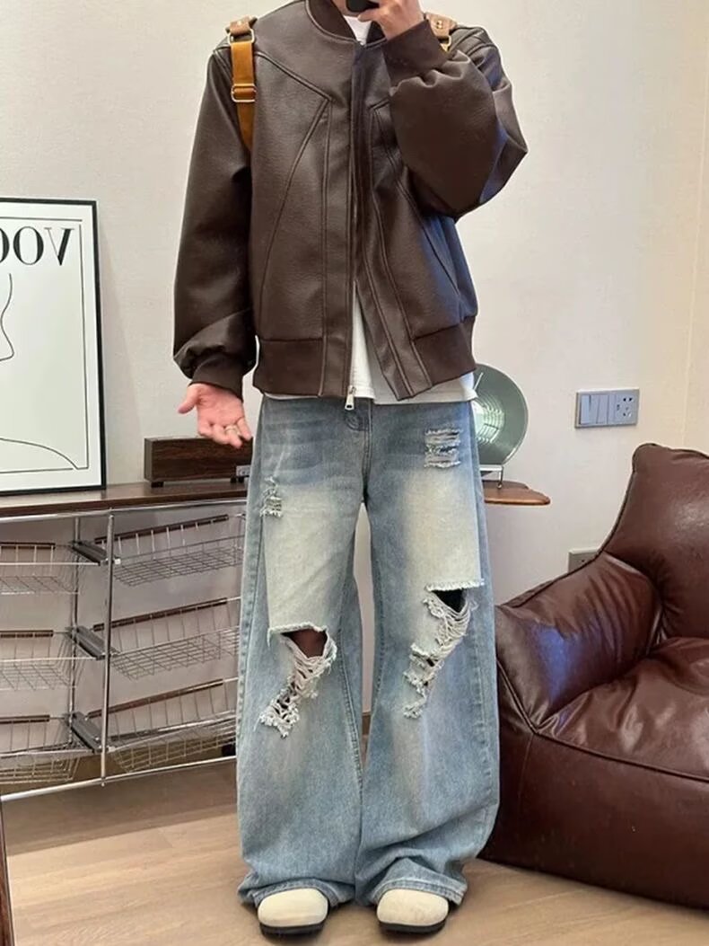 美式复古皮衣外套男款秋季潮牌高级感痞帅机车服立领飞行夹克上衣