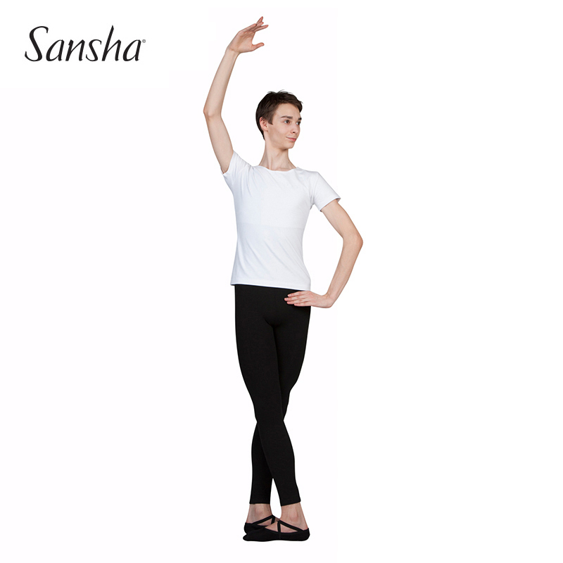 正品Sansha三沙舞蹈服成人男士舞蹈服棉紧身上衣专业芭蕾练功T恤