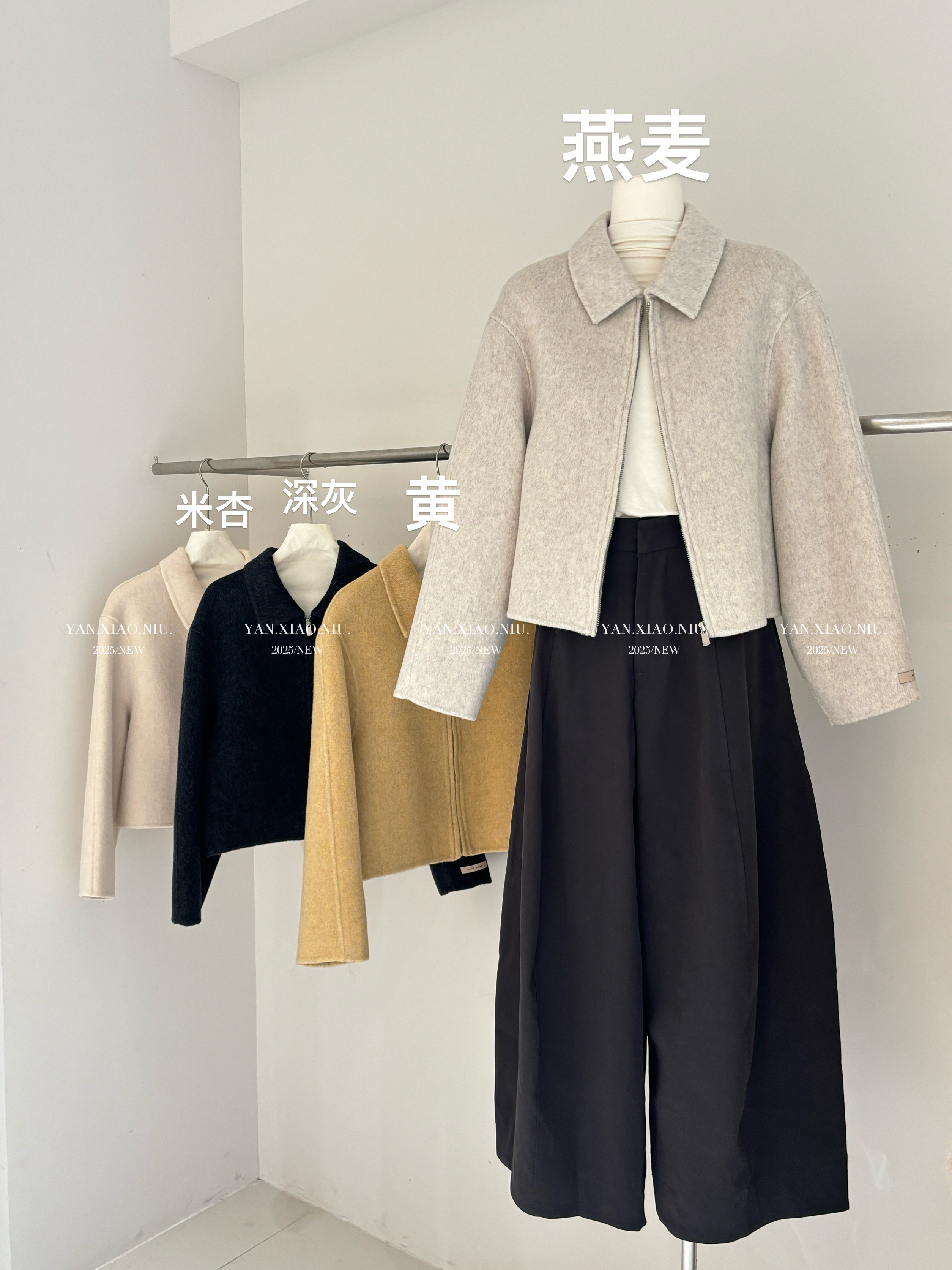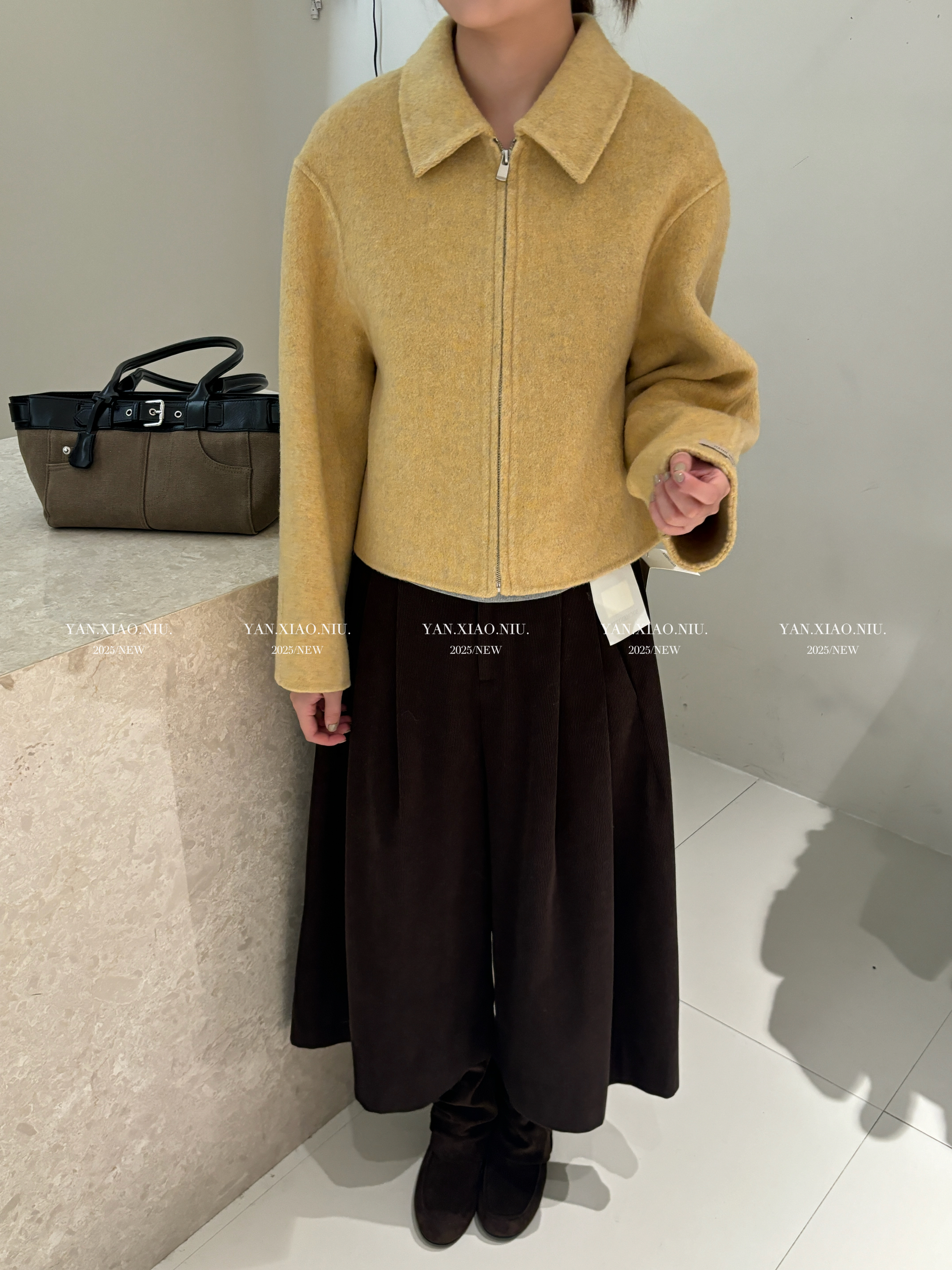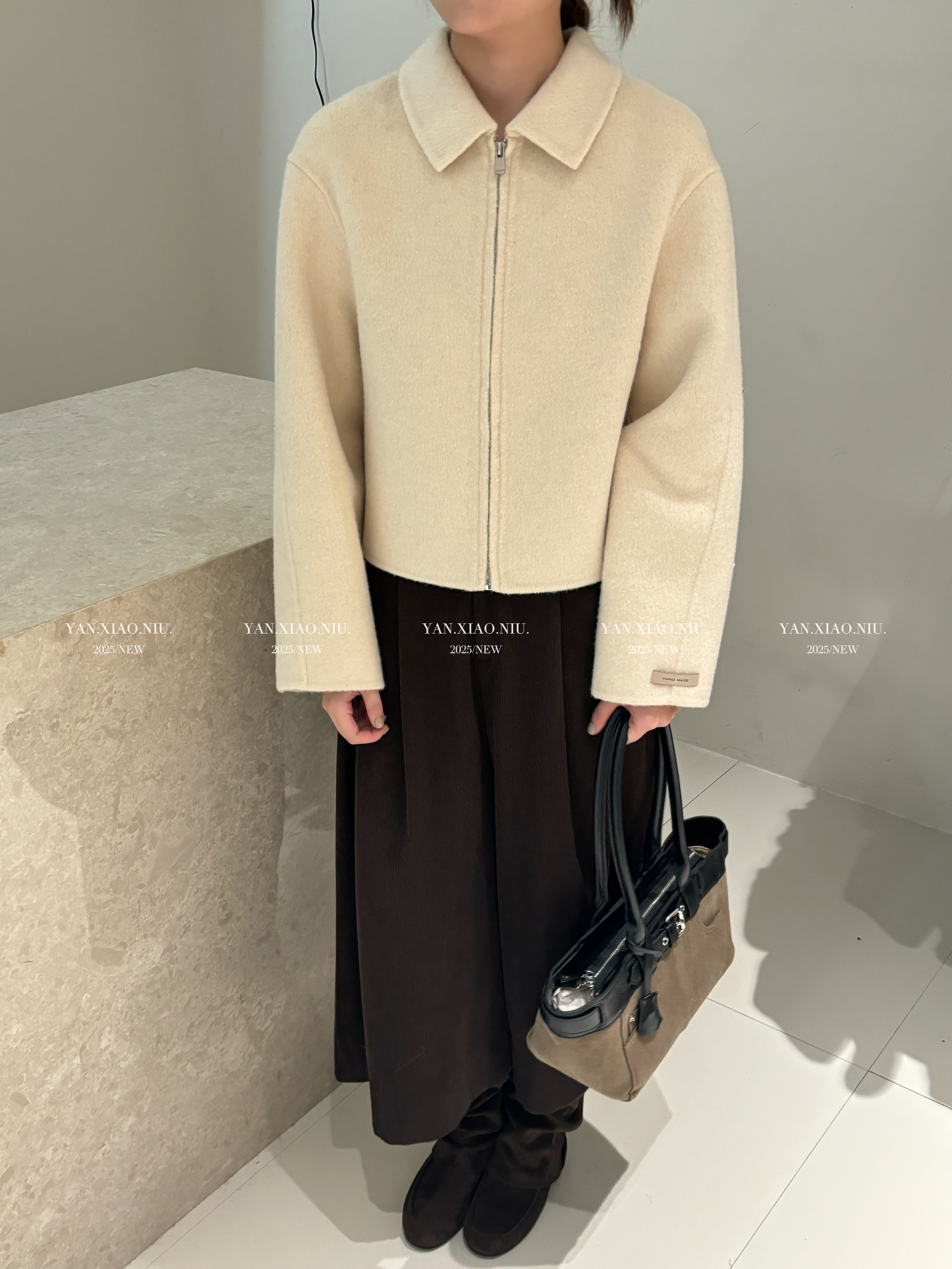 9392秋冬韩版气质百搭休闲拉链翻领双面羊毛大衣小个子毛呢外套女