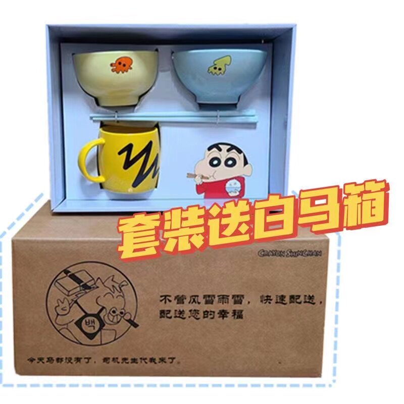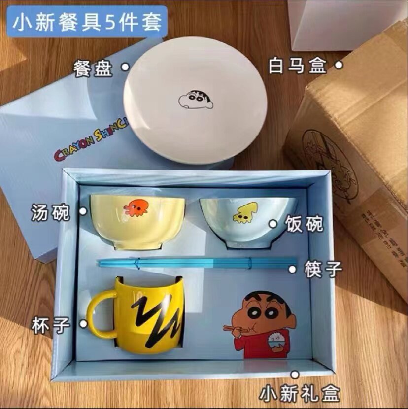 现货蜡笔小新陶瓷餐具套装早餐杯马克杯碗筷组合盘子儿童餐具套装