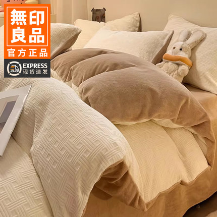 无印良品牛奶绒床上四件套被套冬季加厚珊瑚绒被芯套加绒冬天床品