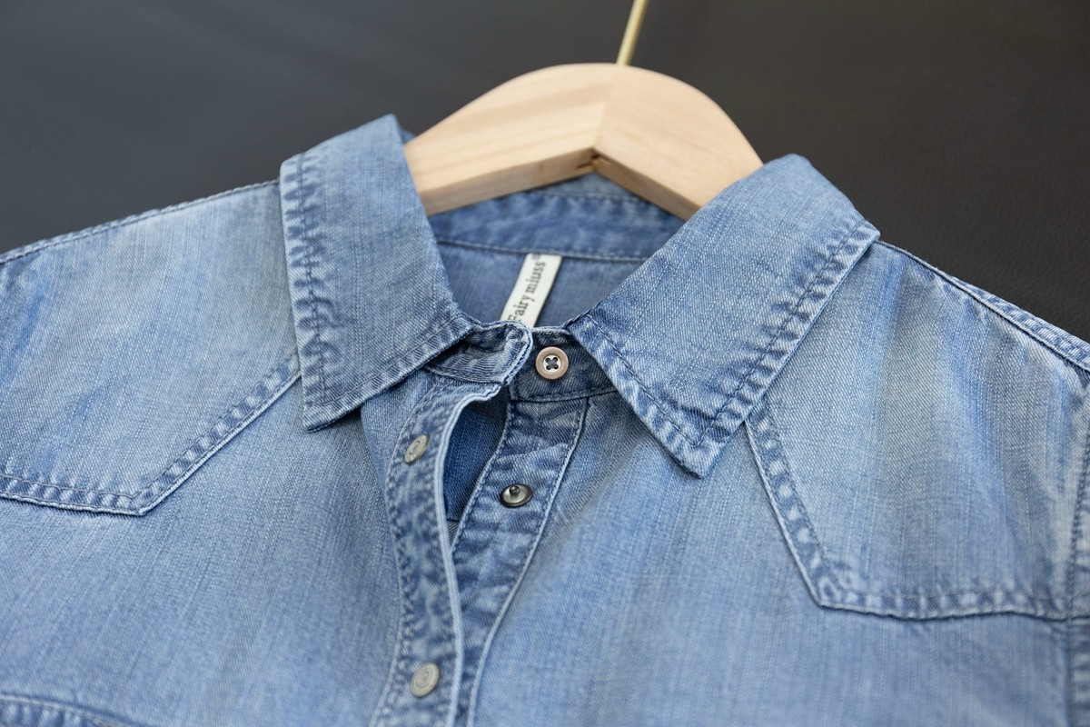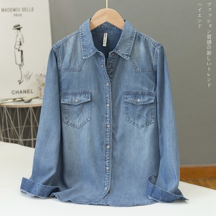 外贸高端女装垂感天丝牛仔衬衫女设计感小众叠穿衬衣打底衫上衣
