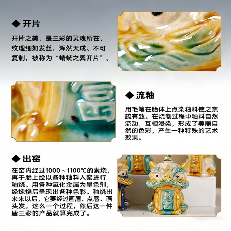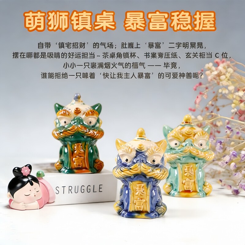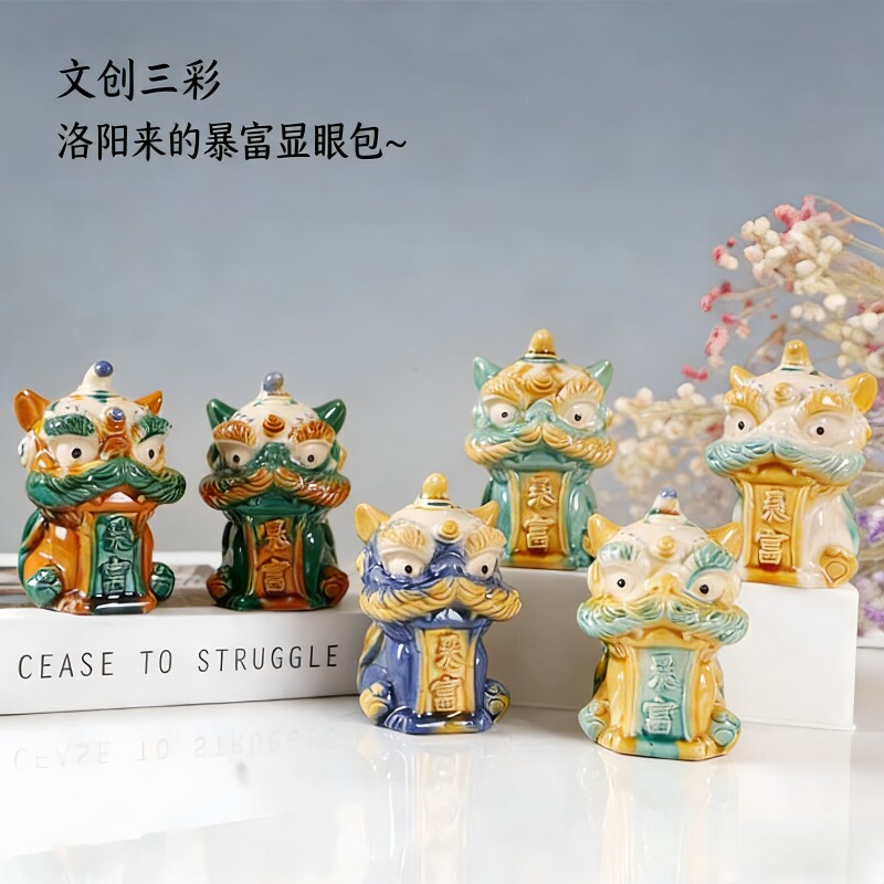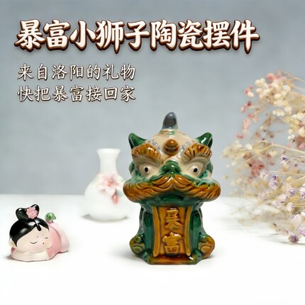 原创洛阳文创纪念品唐三彩暴富狮子翡翠绿陶瓷摆件马年吉祥新年礼