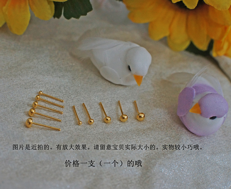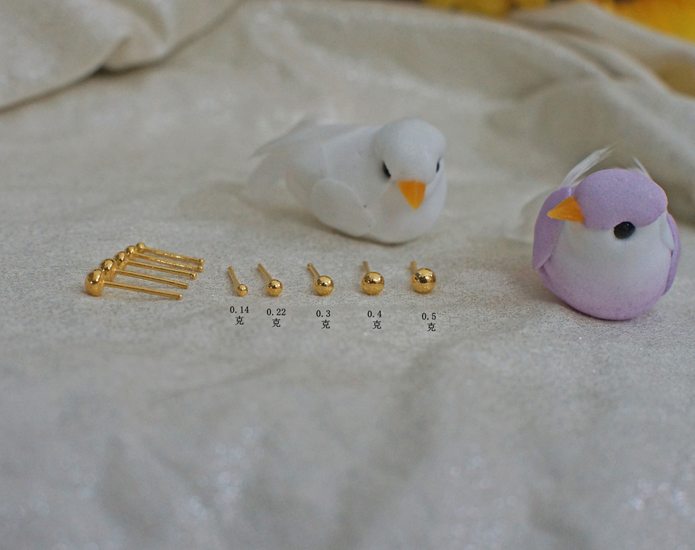 纯黄金小耳钉 999足金防过敏耳环实心圆珠球钉耳饰 养耳棒迷你