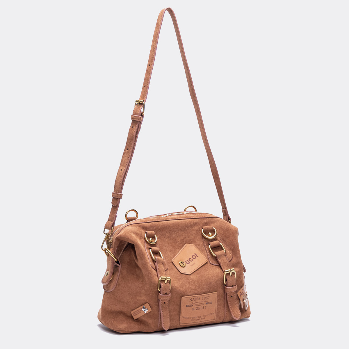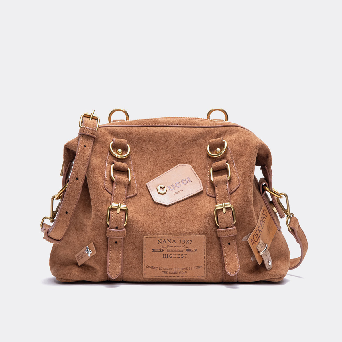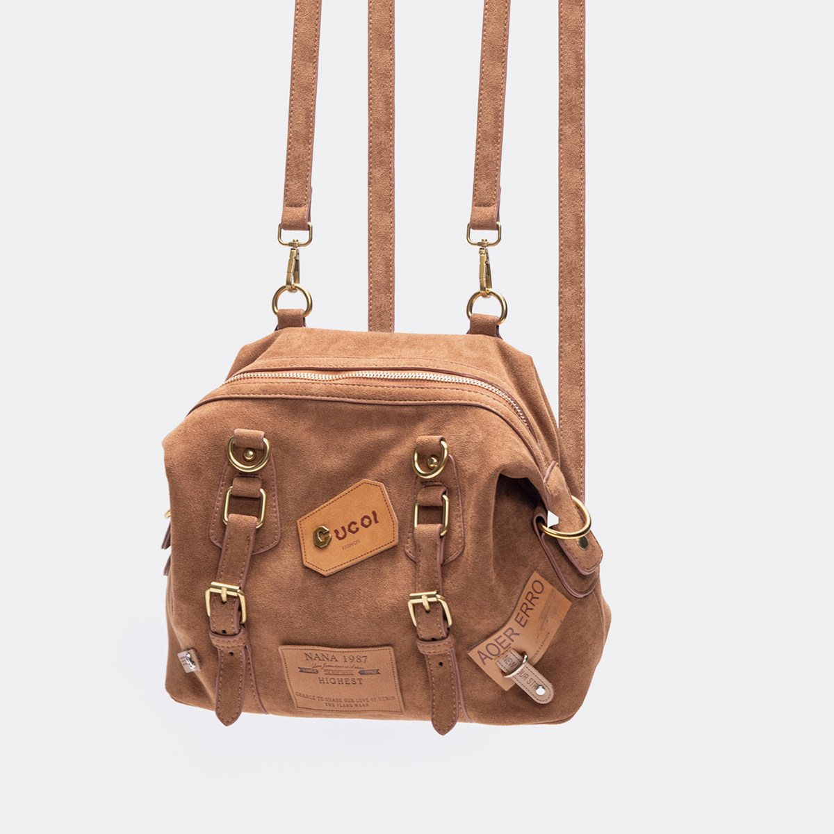 HIATUS原创复古标签棕色双肩包鎏金铆钉创意休闲简约背包斜挎小包