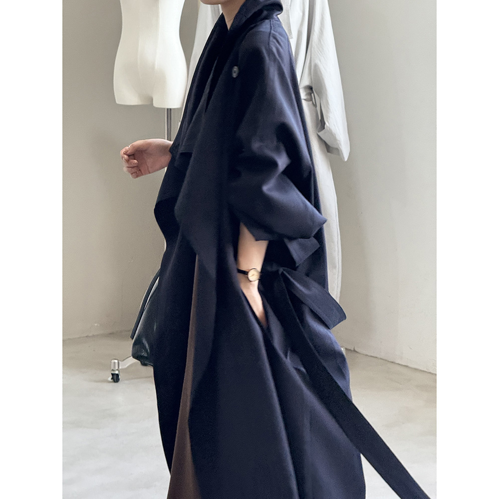 秋季巨好看的大翻领系带长款过膝高个子风衣外套女韩系高级感轻熟