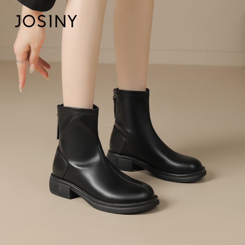 卓诗尼马丁靴女鞋秋冬新款英伦风圆头切尔西短靴法式短筒瘦瘦靴