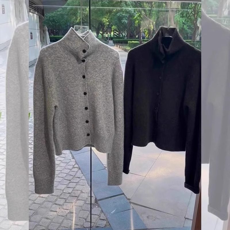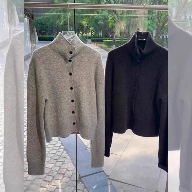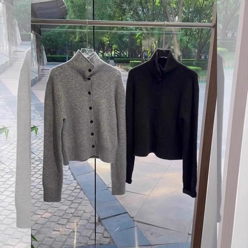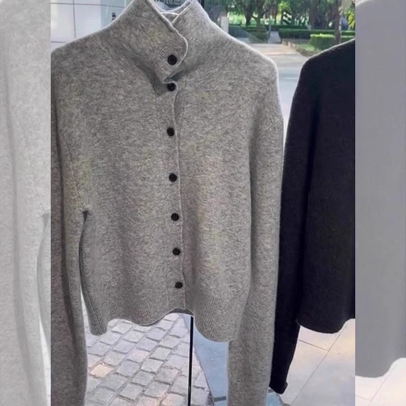 高级感简约百搭单排扣高领灰色毛衣外套女2025春季小个子减龄开衫