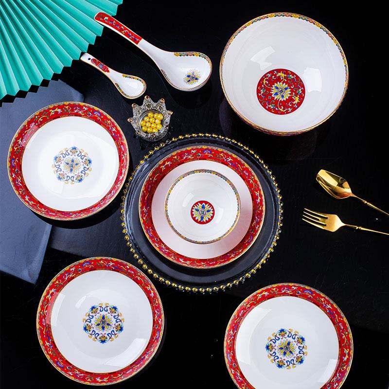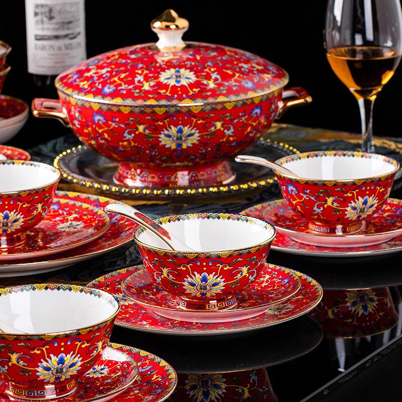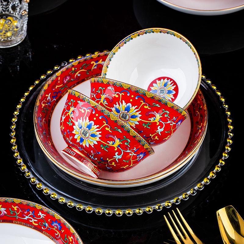 景德镇家用陶瓷饭碗酒店摆台组合珐琅彩骨瓷餐具套装碗盘碗碟菜盘