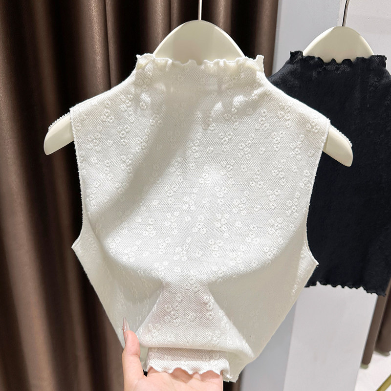 木耳边蕾丝无袖上衣女秋假领子内搭半高领叠穿打底衫短款修身背心