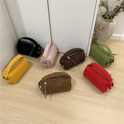 小脏柜 迷你麂皮绒布手提笔筒包小众秋季休闲磨砂圆筒小包斜挎包