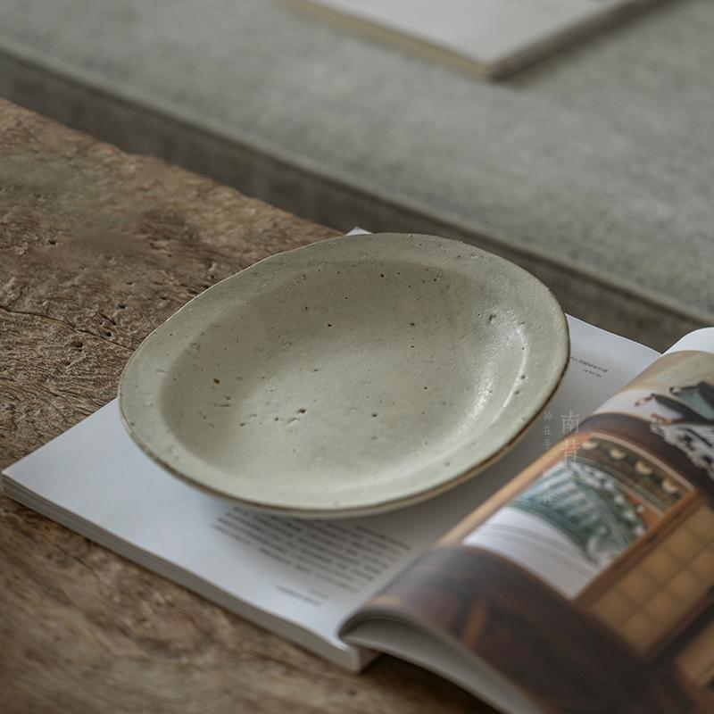 阿沐手作粗陶长方盘子日式诧寂风餐具椭圆盘民宿餐厅家用哑光菜盘