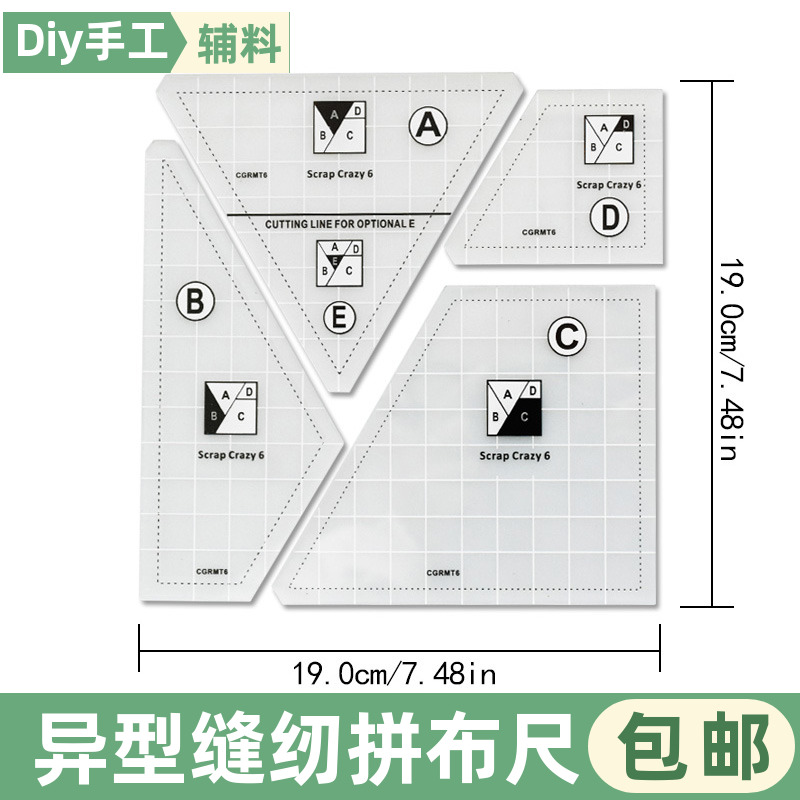 服装设计尺亚克力90°异型缝纫拼布尺切割布料双条尺拼布模板合集