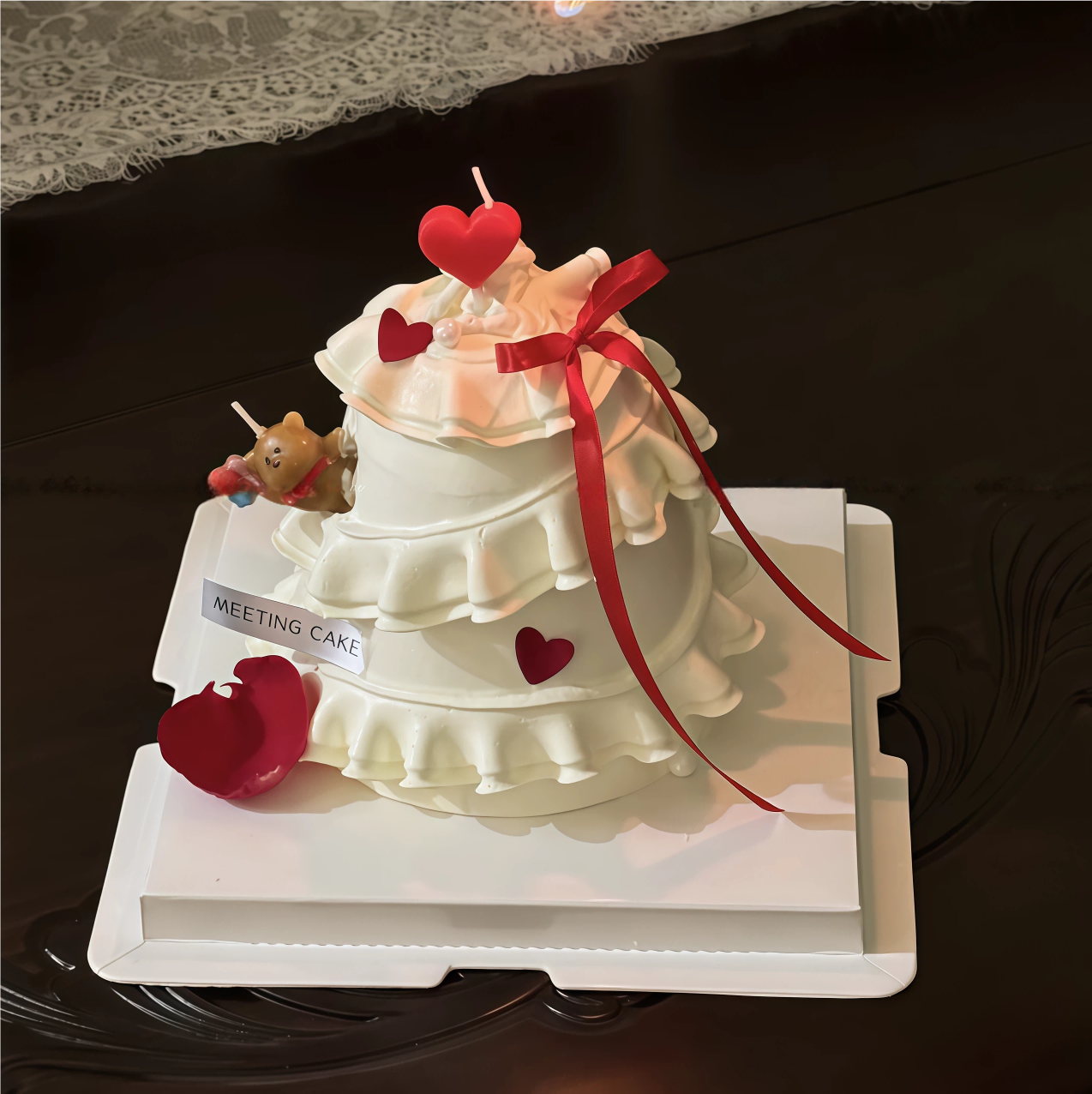 网红2.14情人节送花小熊蜡烛蛋糕装饰摆件情侣表白红色爱心蜡烛