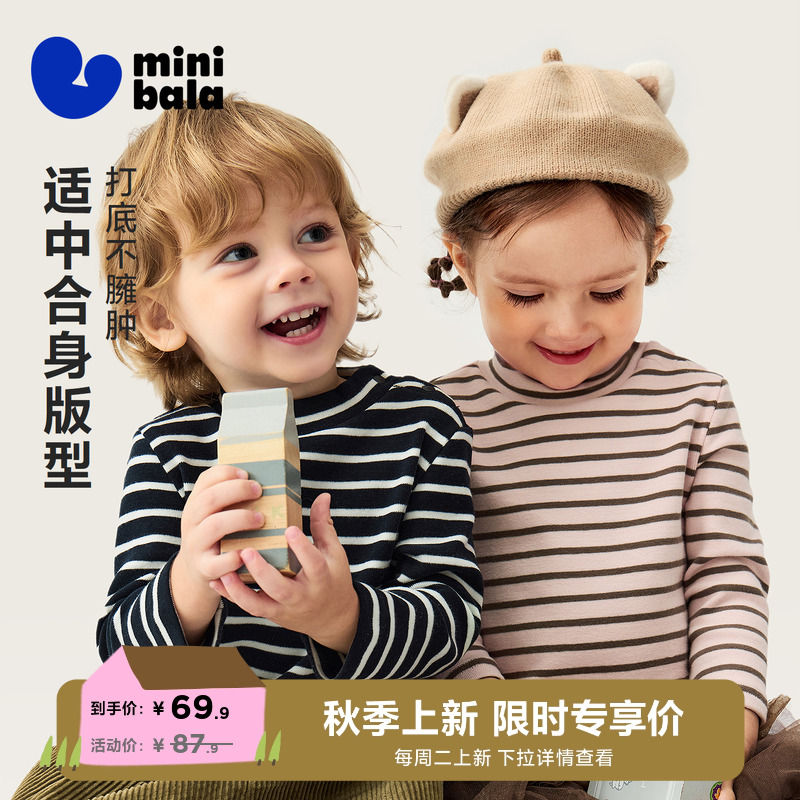 迷你巴拉巴拉亲子儿童男女童长袖T恤2025冬新一家三口高弹打底衫