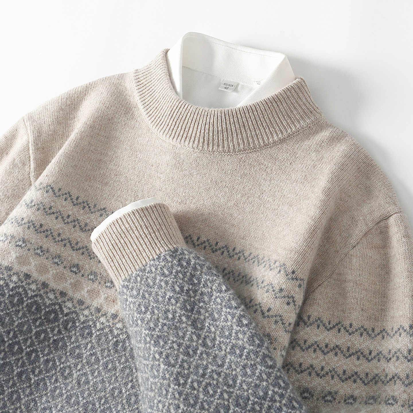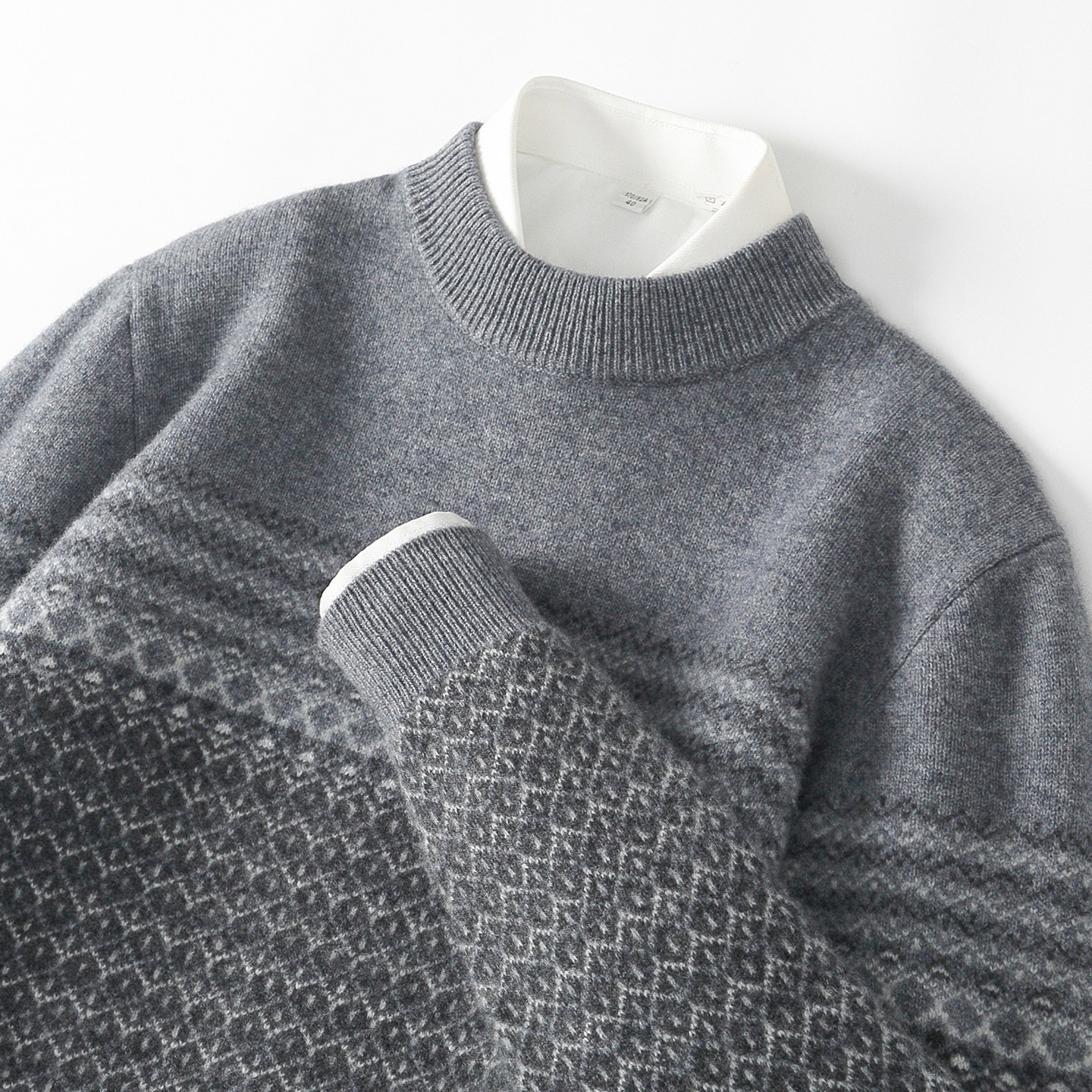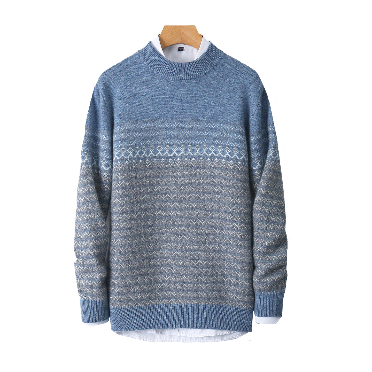 青少年羊绒衫男孩半高领初中高中学生拼色青年羊毛衫中领加厚毛衣