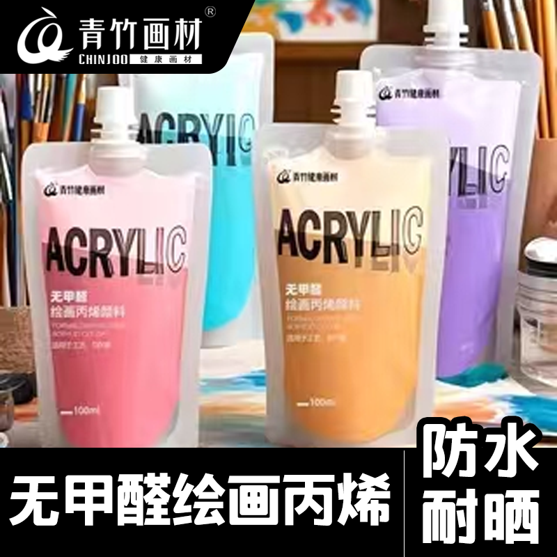青竹无甲醛绘画丙烯颜料100ml袋装美术生专用补充包石膏娃娃diy颜料绘画防水防晒不掉色初学者学生儿童画画