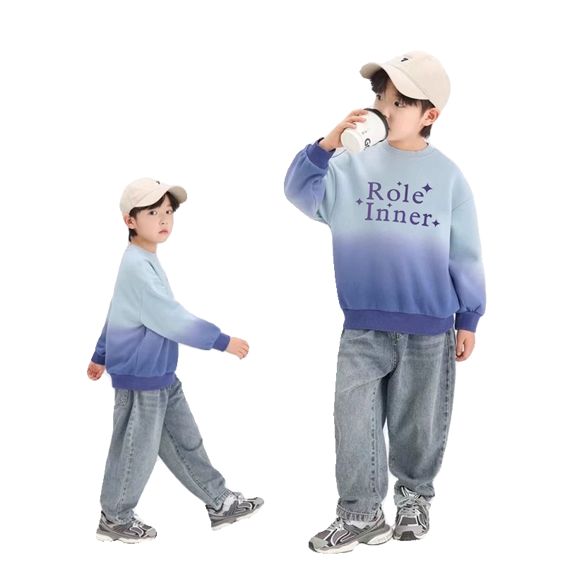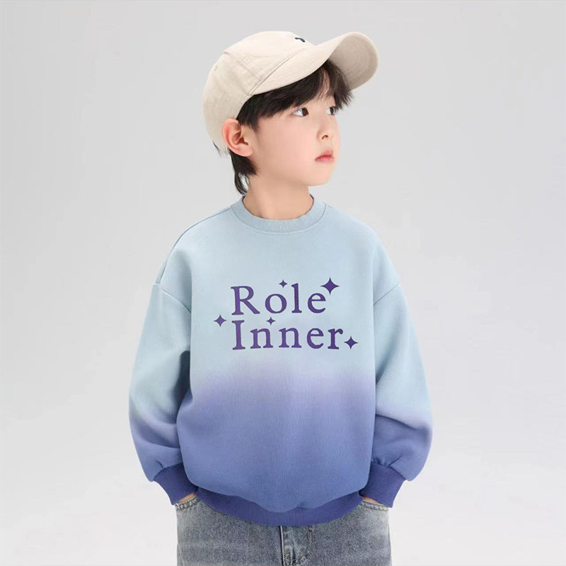 男童卫衣2025新款春装儿童渐变圆领衣服酷帅男孩春秋款打底上衣潮