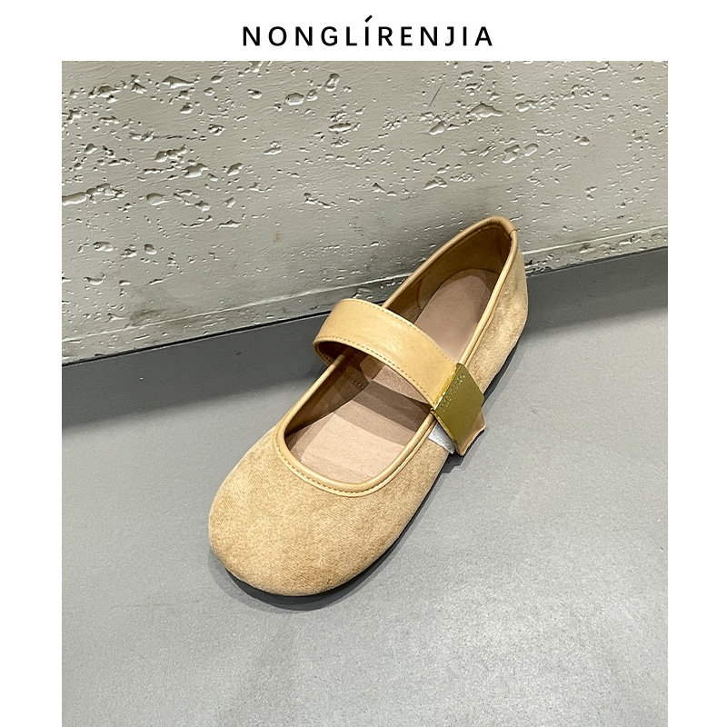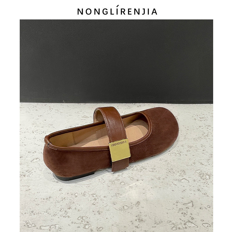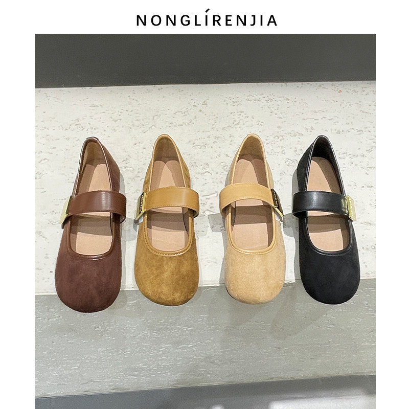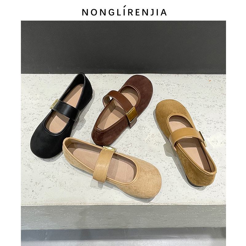 弄里人佳大码女鞋41-43单鞋25秋新款复古平底玛丽珍鞋40 42宽胖脚