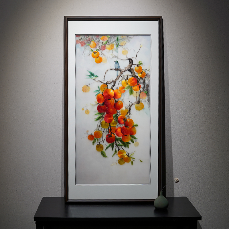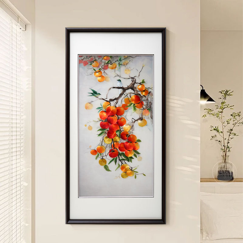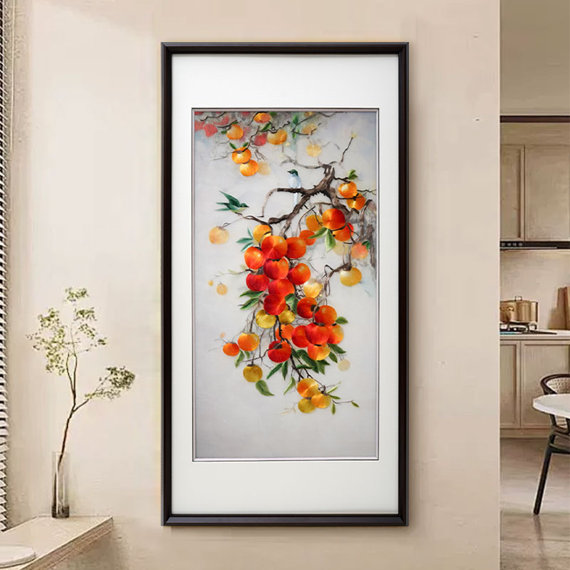 苏绣挂画新中式事事如意柿子纯手工刺绣画玄关过道走廊客厅装饰画