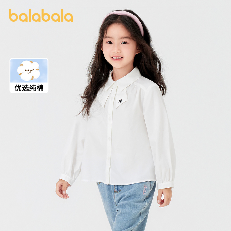【商场同款】巴拉巴拉童装女童长袖衬衫秋2025新款纯棉白衬衣宽松