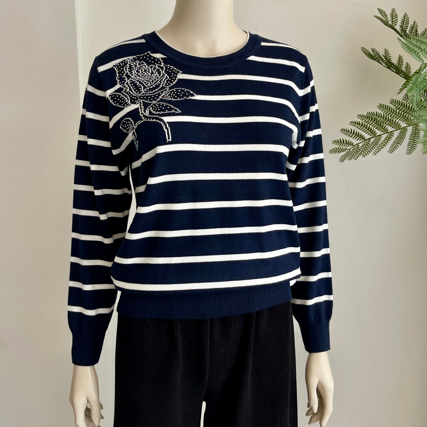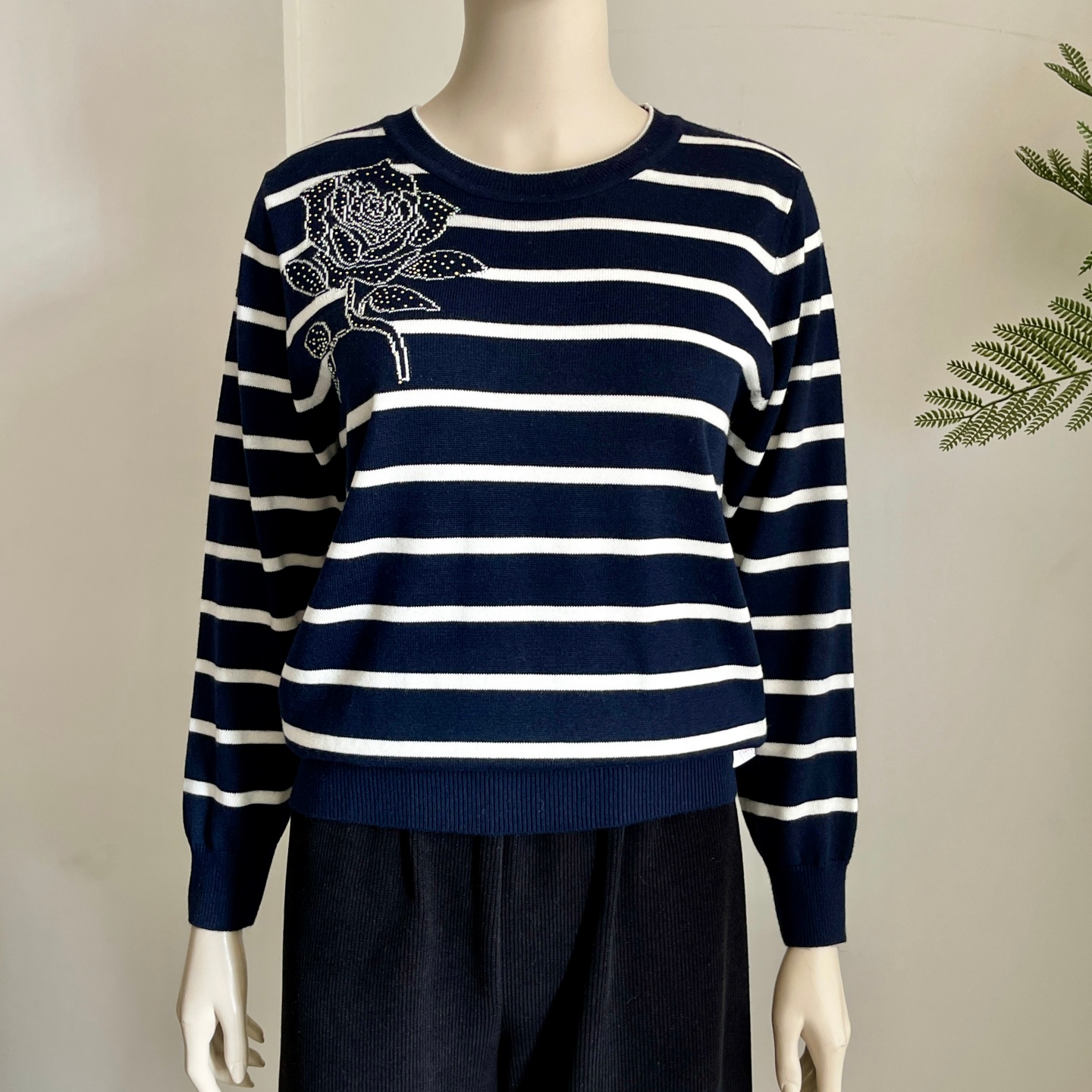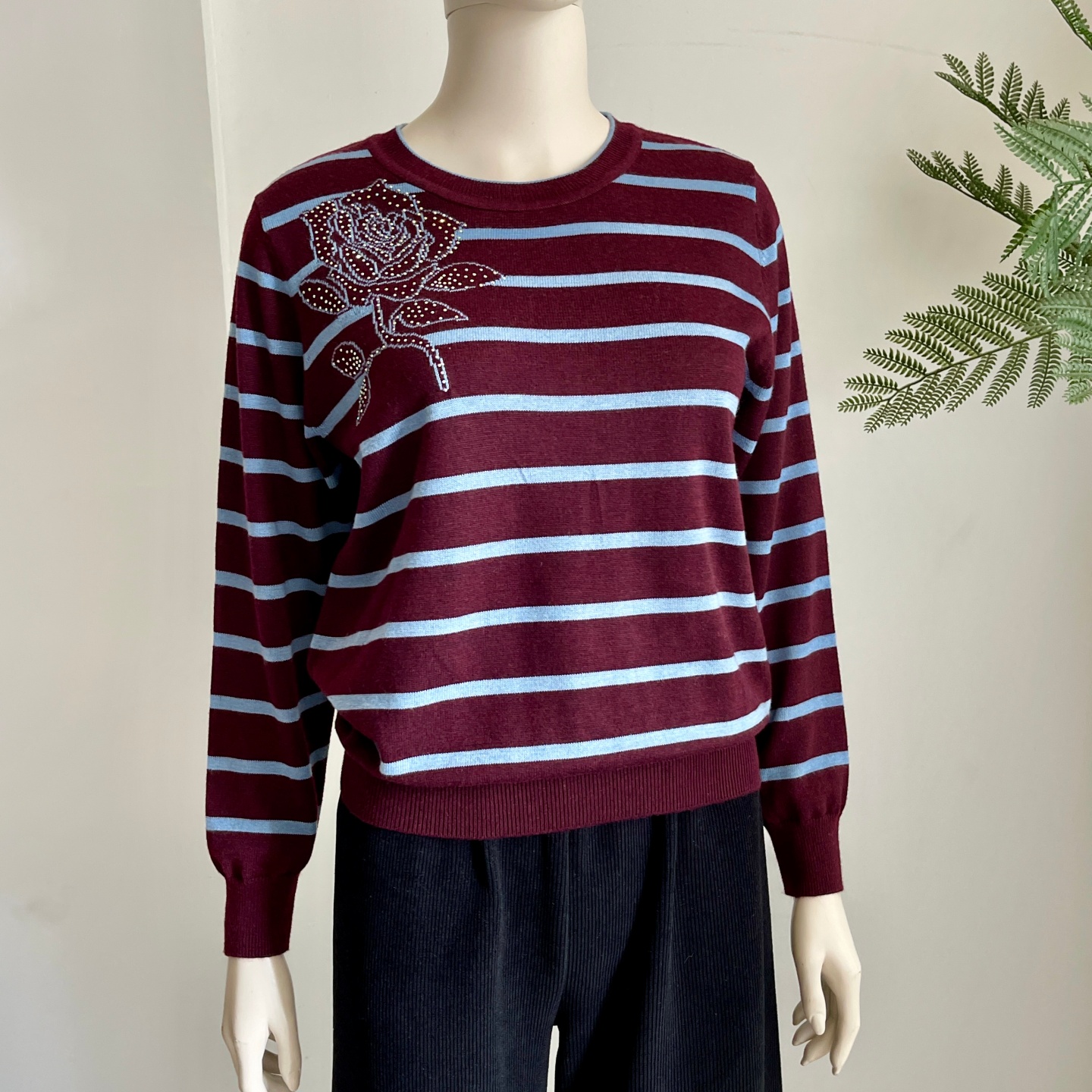 时尚洋气条纹针织衫女妈妈装打底衫春秋新款中老年人上衣休闲气质