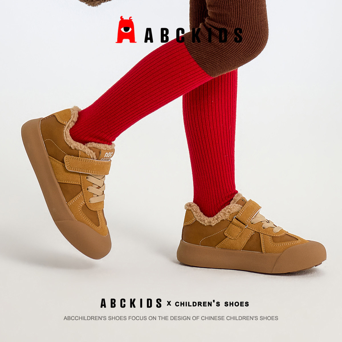 ABCkids童鞋儿童保暖棉鞋加绒冬季青少年板鞋女童防滑二棉运动鞋
