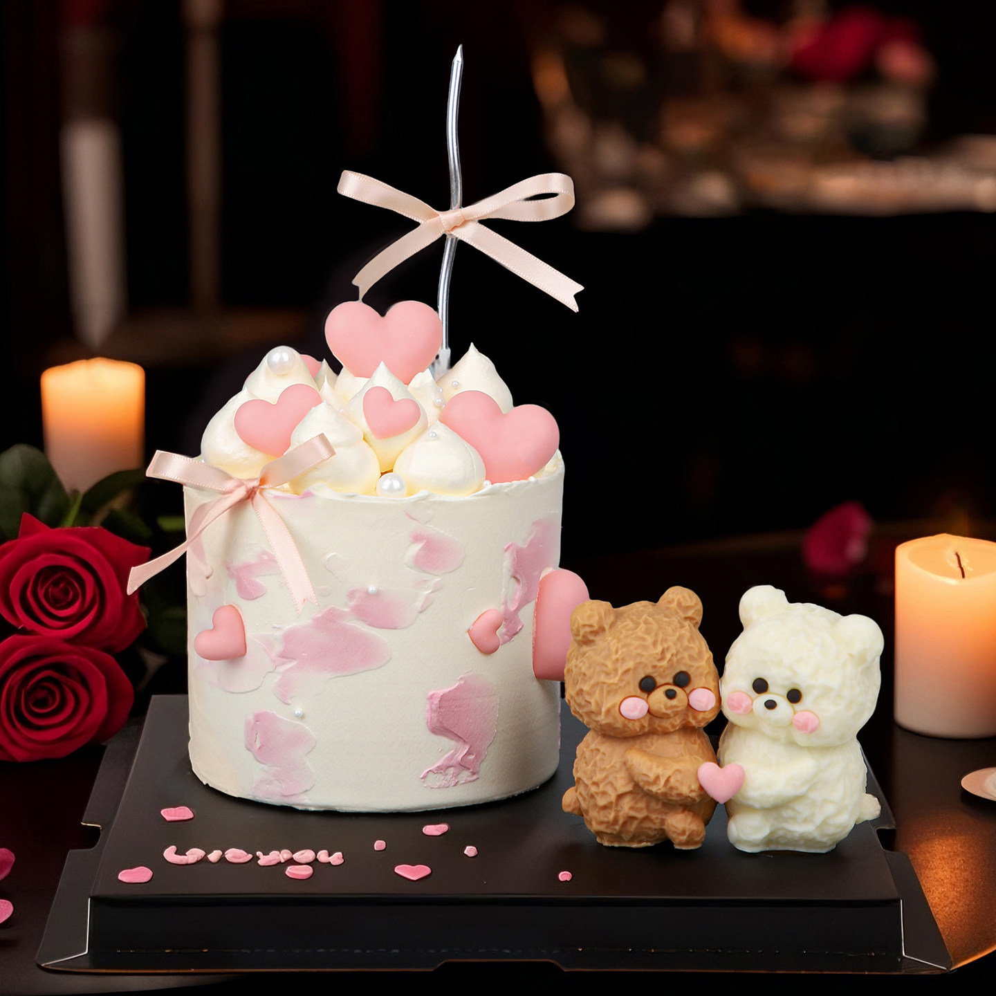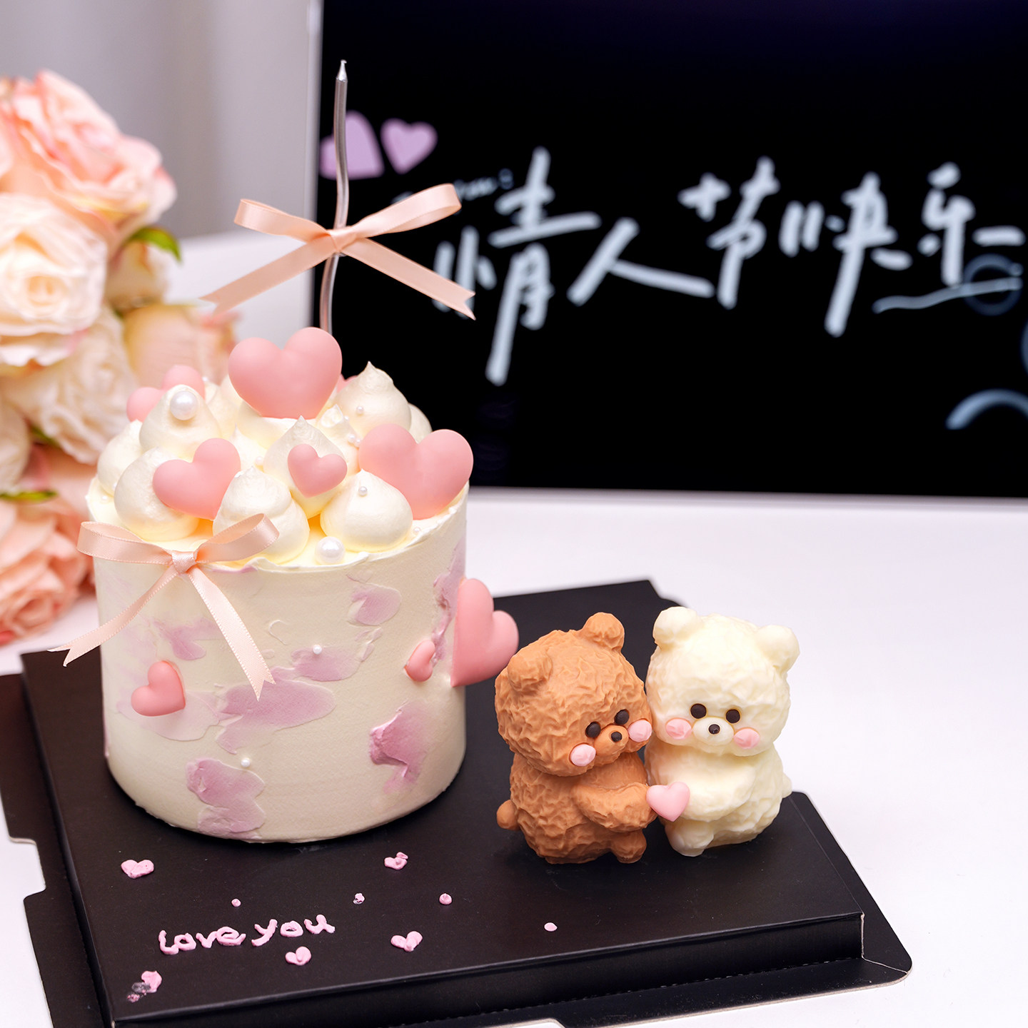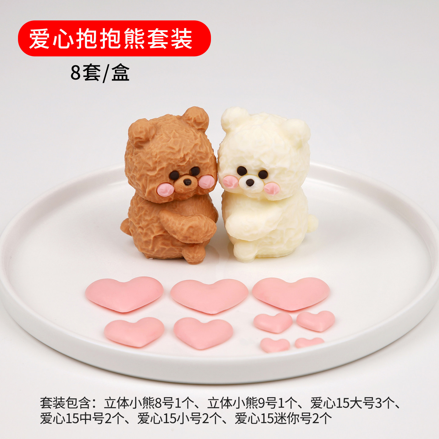 爱心小熊巧克力蛋糕装饰摆件纪念日卡通情侣抱抱熊告白熊烘焙插件
